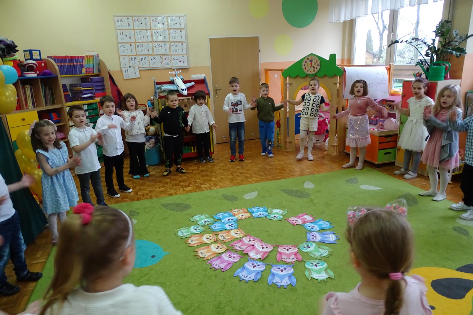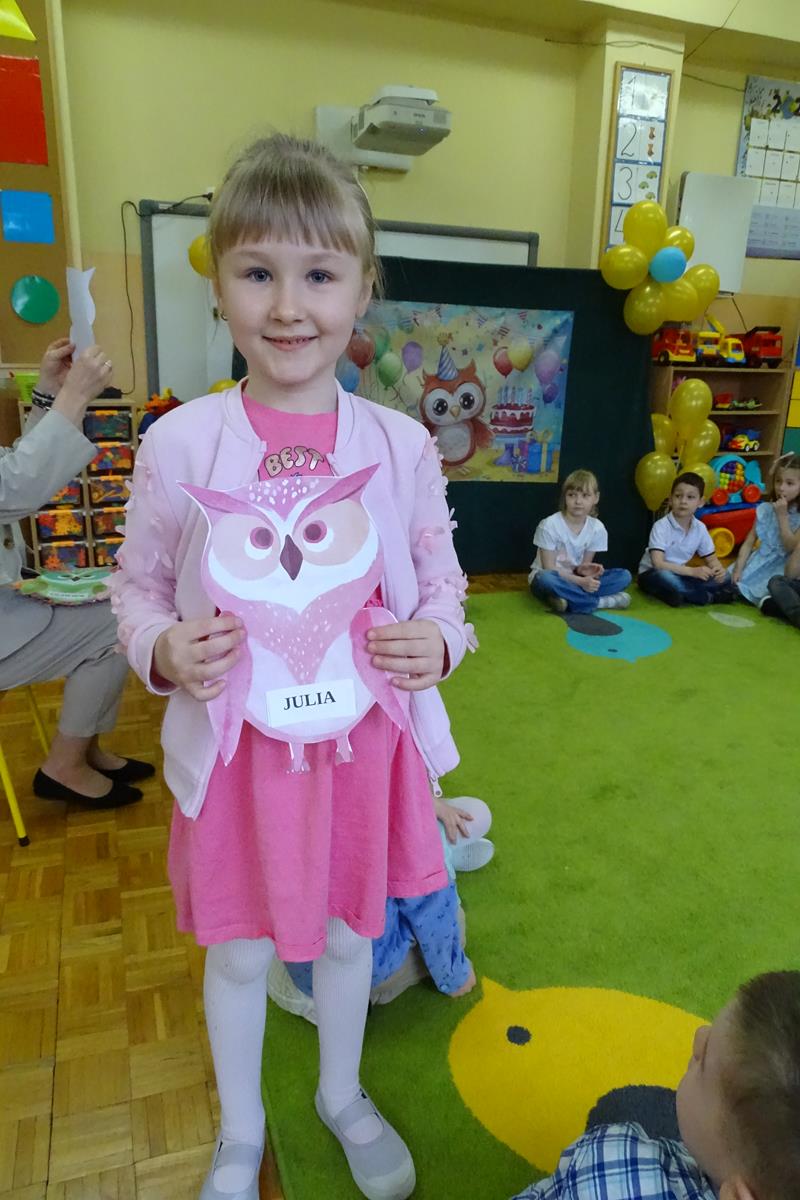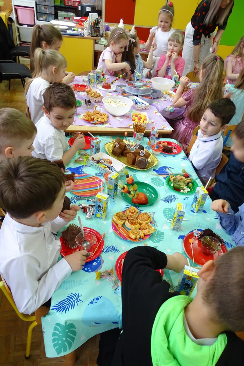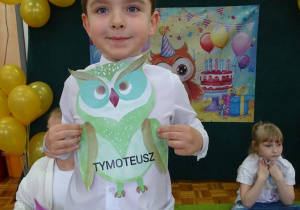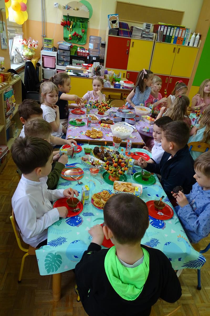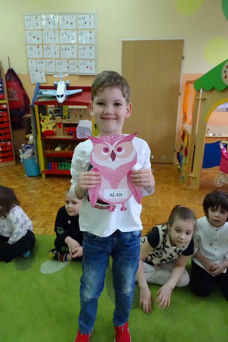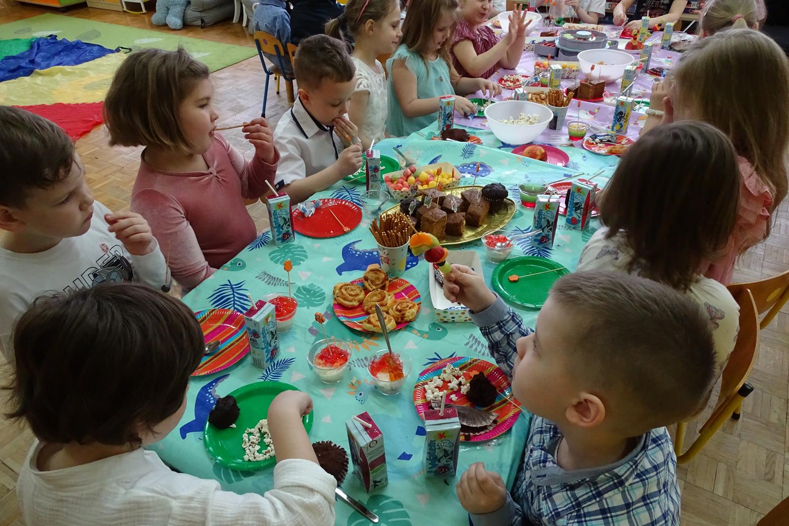 20 kwietnia w naszej sali zapanowała wyjątkowa atmosfera – świętowaliśmy Dzień Sowy, czyli urodziny naszej grupy „Sówki”! Był to dzień pełen radości, uśmiechów i wspólnego bycia razem. Dzieci przyszły odświętnie ubrane, co dodało wydarzeniu uroczystego charakteru. Ogromną niespodziankę przygotowali Rodzice – stoły wypełniły się pysznymi słodkościami i zdrowymi przekąskami, za co serdecznie dziękujemy!!! ;) Nie zabrakło także wspaniałych aktywności. Przedszkolaki z zaangażowaniem szukały sówek ze swoimi imionami, utrwalając przy tym czytanie globalne. Były radosne pląsy, zabawy ruchowe przy muzyce oraz gry integracyjne, które jeszcze bardziej zbliżyły naszą grupę. Wspólnie stworzyliśmy również dużą, sensoryczną sowę – symbol naszej grupy, która będzie przypominać nam o tym wyjątkowym dniu.