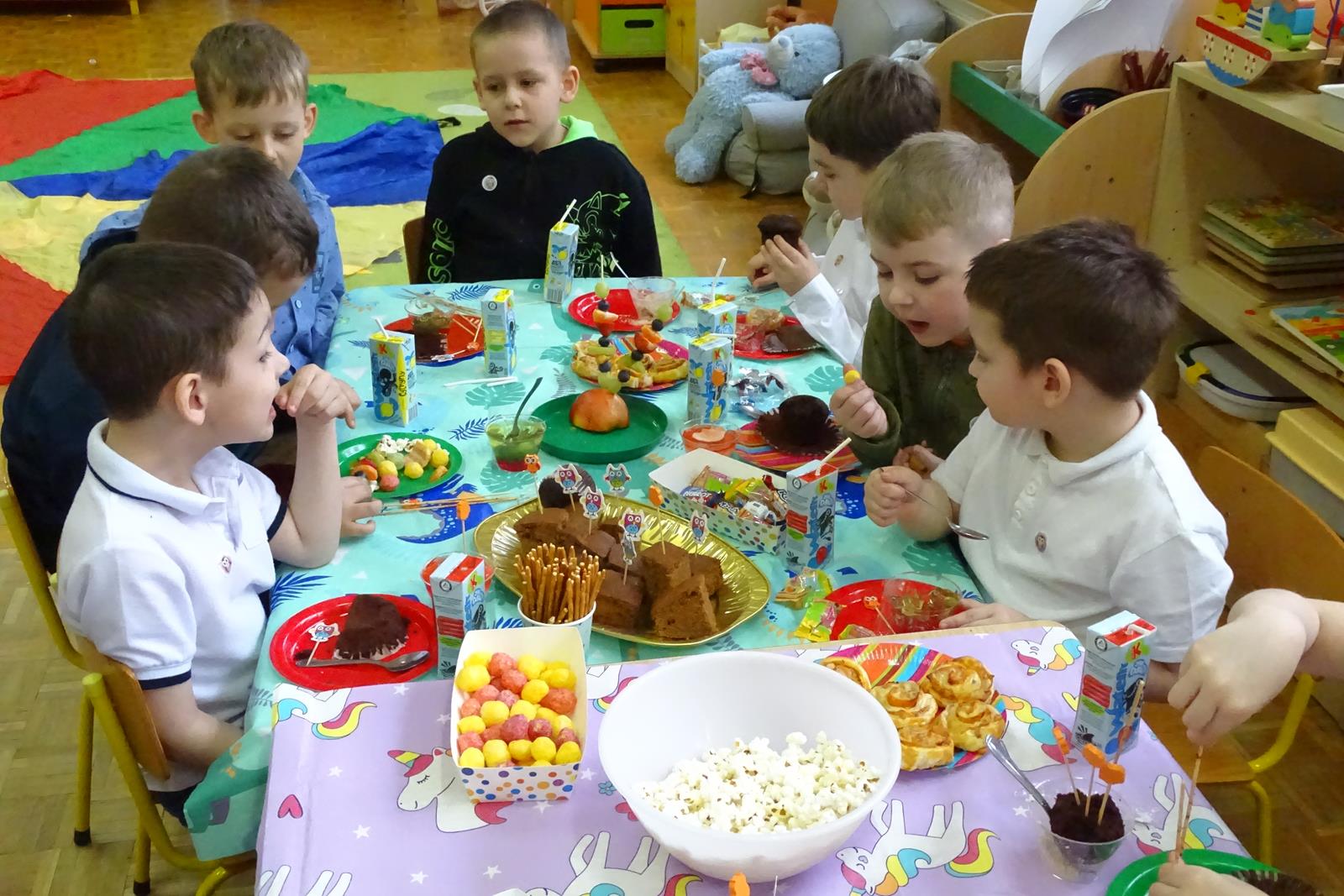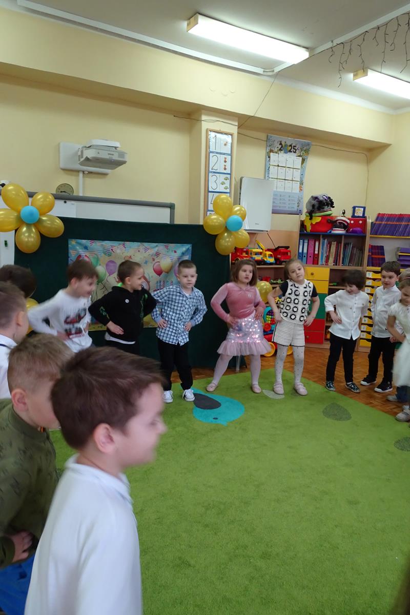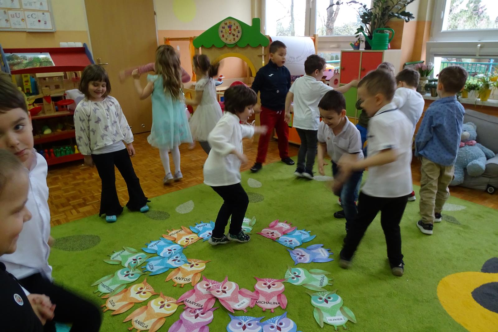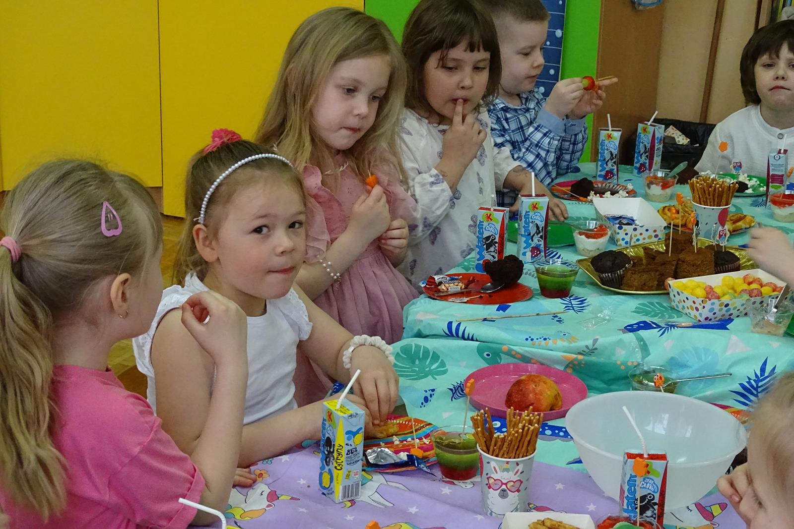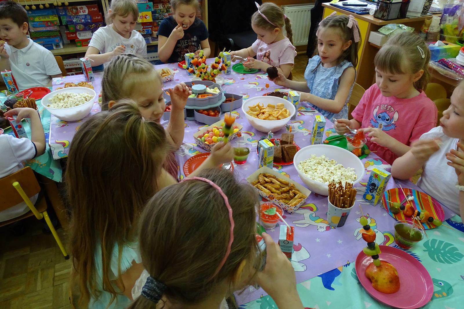 20 kwietnia w naszej sali zapanowała wyjątkowa atmosfera – świętowaliśmy Dzień Sowy, czyli urodziny naszej grupy „Sówki”! Był to dzień pełen radości, uśmiechów i wspólnego bycia razem. Dzieci przyszły odświętnie ubrane, co dodało wydarzeniu uroczystego charakteru. Ogromną niespodziankę przygotowali Rodzice – stoły wypełniły się pysznymi słodkościami i zdrowymi przekąskami, za co serdecznie dziękujemy!!! ;) Nie zabrakło także wspaniałych aktywności. Przedszkolaki z zaangażowaniem szukały sówek ze swoimi imionami, utrwalając przy tym czytanie globalne. Były radosne pląsy, zabawy ruchowe przy muzyce oraz gry integracyjne, które jeszcze bardziej zbliżyły naszą grupę. Wspólnie stworzyliśmy również dużą, sensoryczną sowę – symbol naszej grupy, która będzie przypominać nam o tym wyjątkowym dniu.