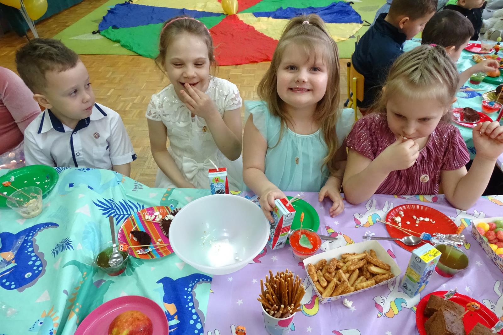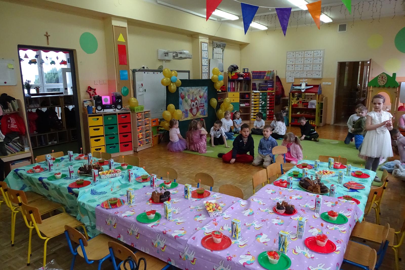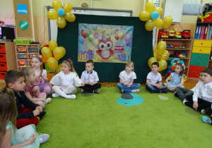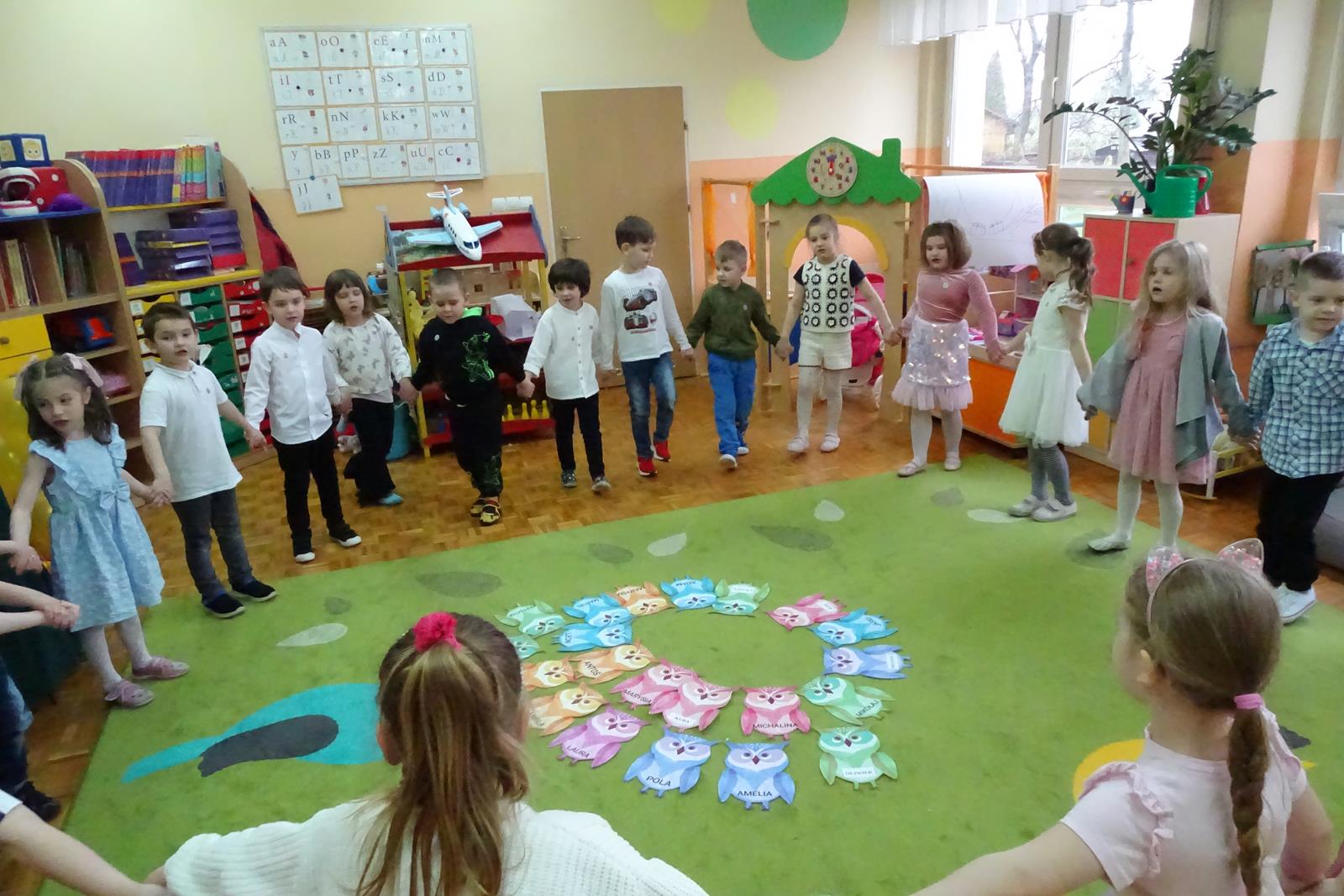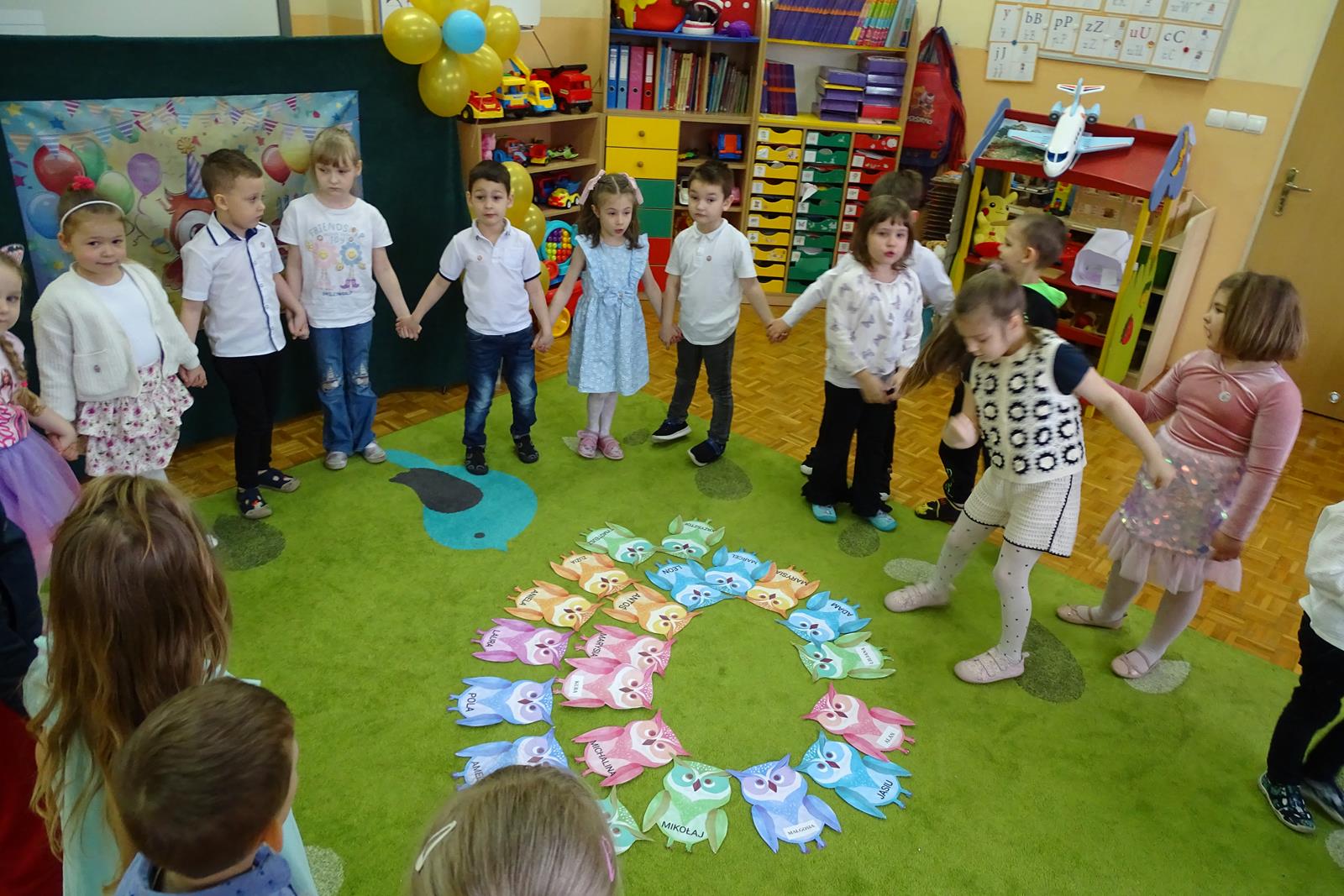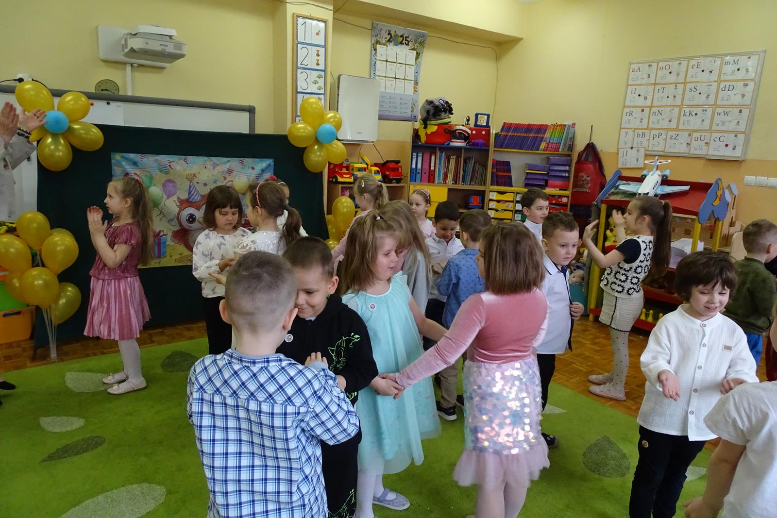20 kwietnia w naszej sali zapanowała wyjątkowa atmosfera – świętowaliśmy Dzień Sowy, czyli urodziny naszej grupy „Sówki”! Był to dzień pełen radości, uśmiechów i wspólnego bycia razem. Dzieci przyszły odświętnie ubrane, co dodało wydarzeniu uroczystego charakteru. Ogromną niespodziankę przygotowali Rodzice – stoły wypełniły się pysznymi słodkościami i zdrowymi przekąskami, za co serdecznie dziękujemy!!! ;) Nie zabrakło także wspaniałych aktywności. Przedszkolaki z zaangażowaniem szukały sówek ze swoimi imionami, utrwalając przy tym czytanie globalne. Były radosne pląsy, zabawy ruchowe przy muzyce oraz gry integracyjne, które jeszcze bardziej zbliżyły naszą grupę. Wspólnie stworzyliśmy również dużą, sensoryczną sowę – symbol naszej grupy, która będzie przypominać nam o tym wyjątkowym dniu.