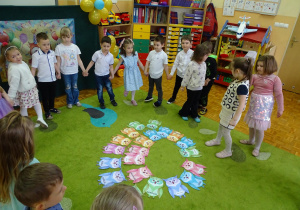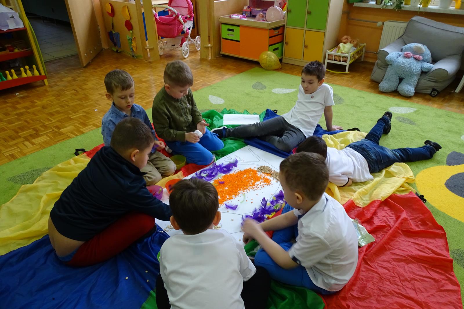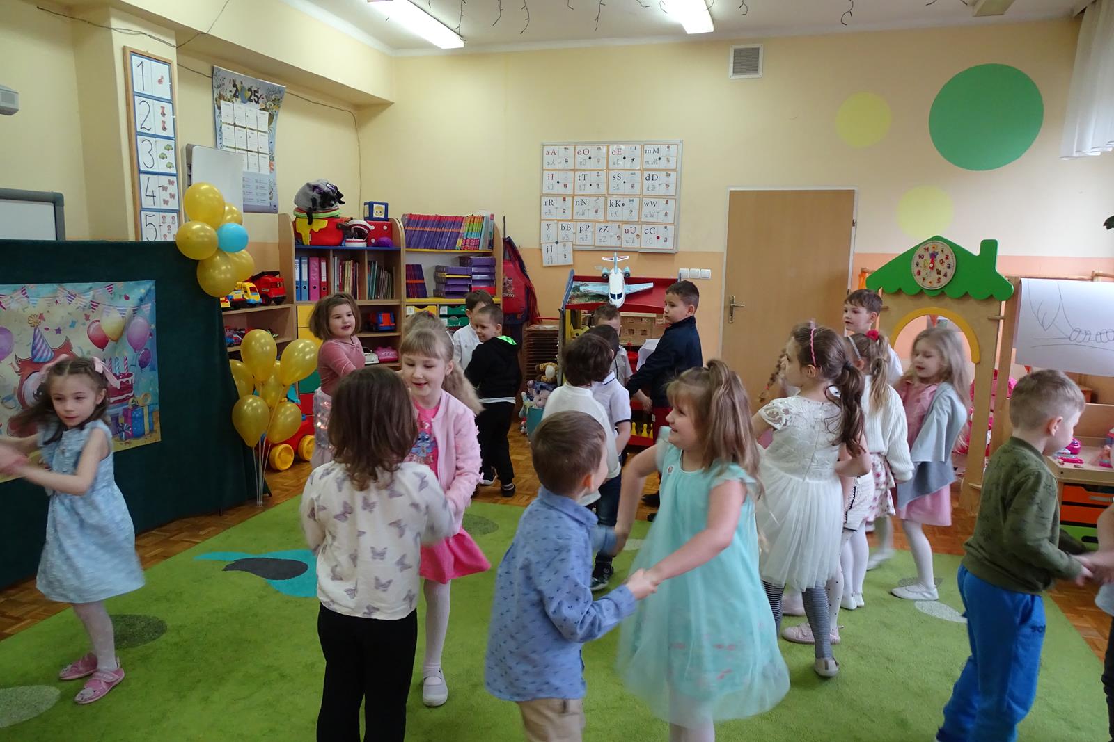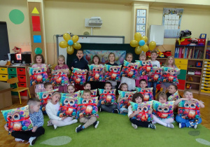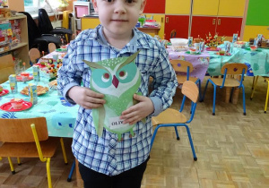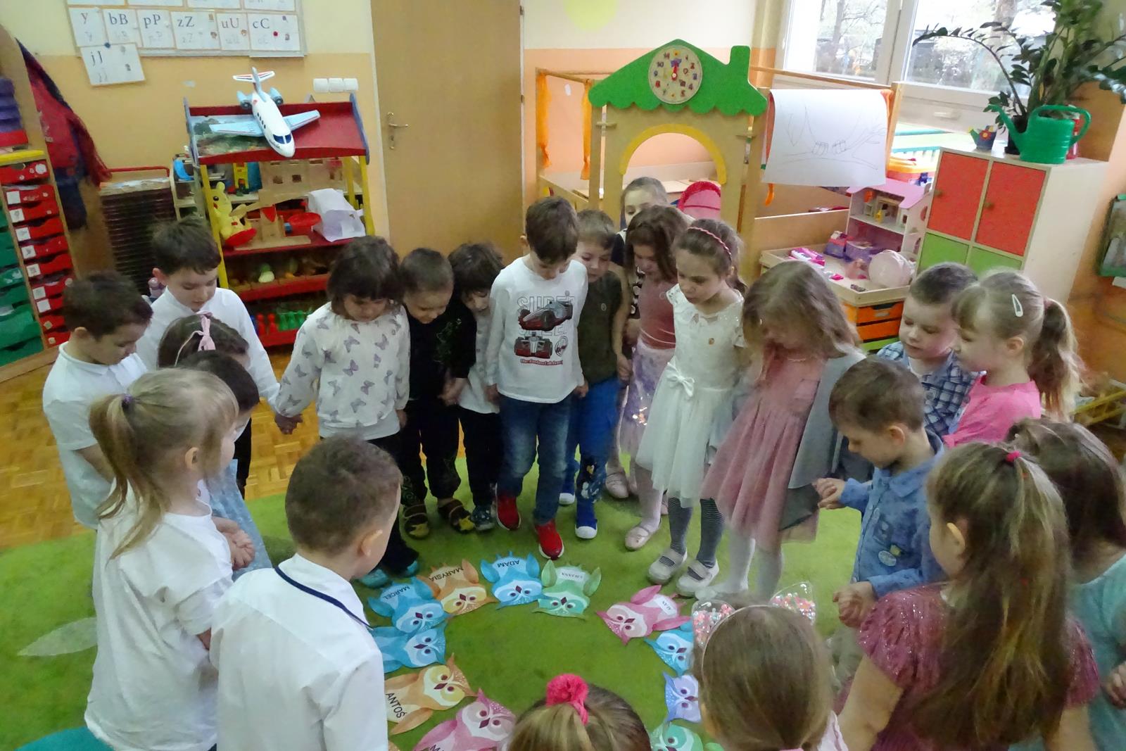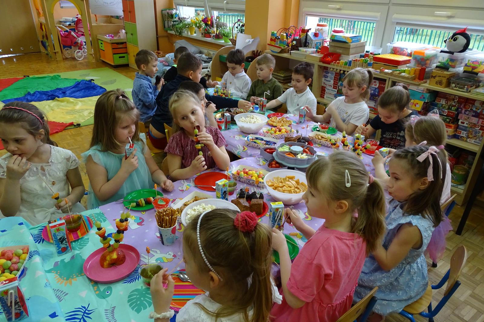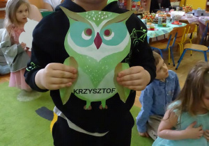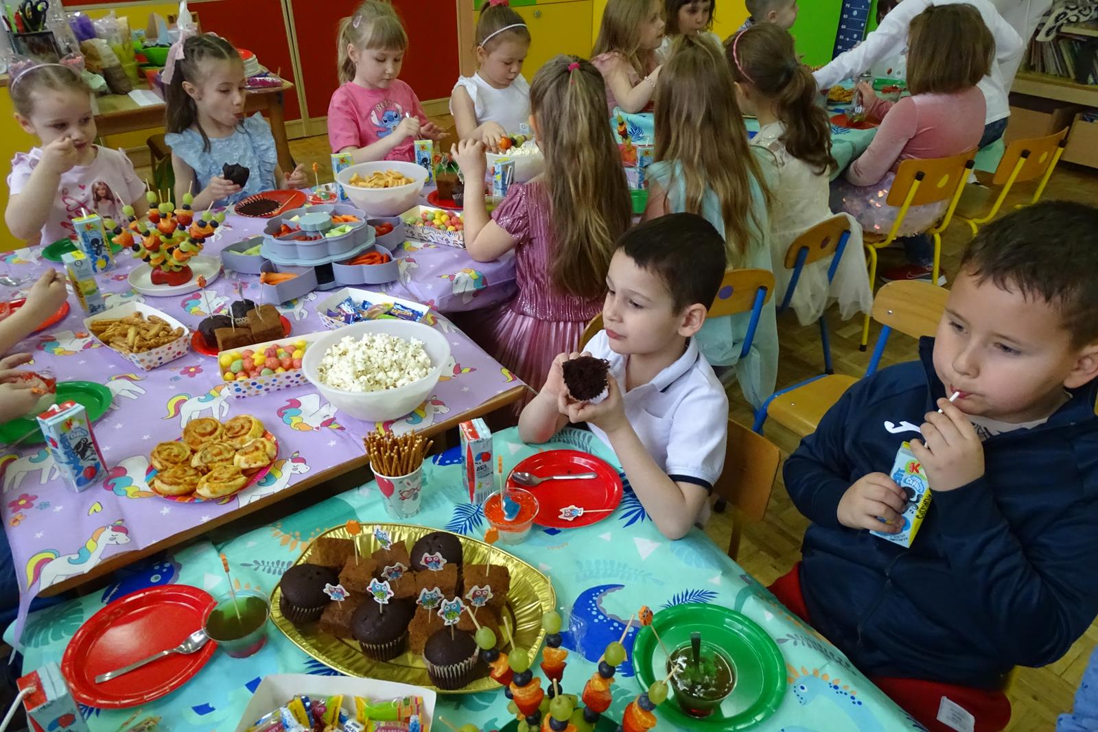 20 kwietnia w naszej sali zapanowała wyjątkowa atmosfera – świętowaliśmy Dzień Sowy, czyli urodziny naszej grupy „Sówki”! Był to dzień pełen radości, uśmiechów i wspólnego bycia razem. Dzieci przyszły odświętnie ubrane, co dodało wydarzeniu uroczystego charakteru. Ogromną niespodziankę przygotowali Rodzice – stoły wypełniły się pysznymi słodkościami i zdrowymi przekąskami, za co serdecznie dziękujemy!!! ;) Nie zabrakło także wspaniałych aktywności. Przedszkolaki z zaangażowaniem szukały sówek ze swoimi imionami, utrwalając przy tym czytanie globalne. Były radosne pląsy, zabawy ruchowe przy muzyce oraz gry integracyjne, które jeszcze bardziej zbliżyły naszą grupę. Wspólnie stworzyliśmy również dużą, sensoryczną sowę – symbol naszej grupy, która będzie przypominać nam o tym wyjątkowym dniu.