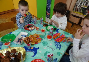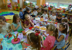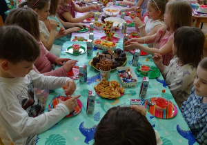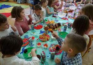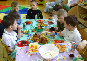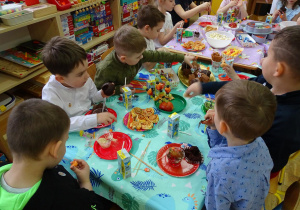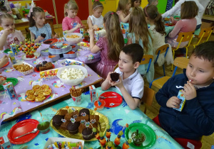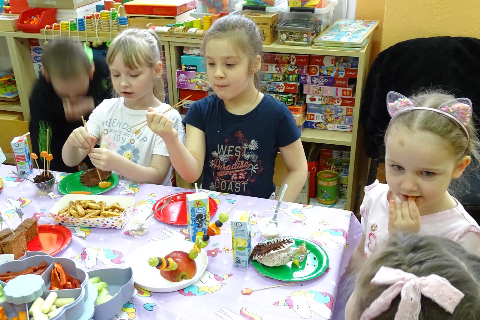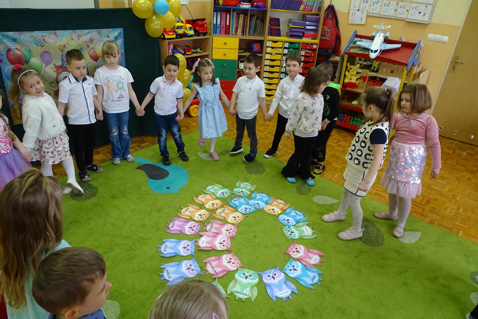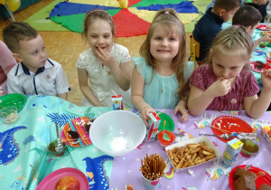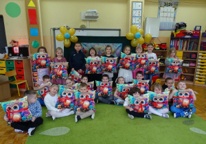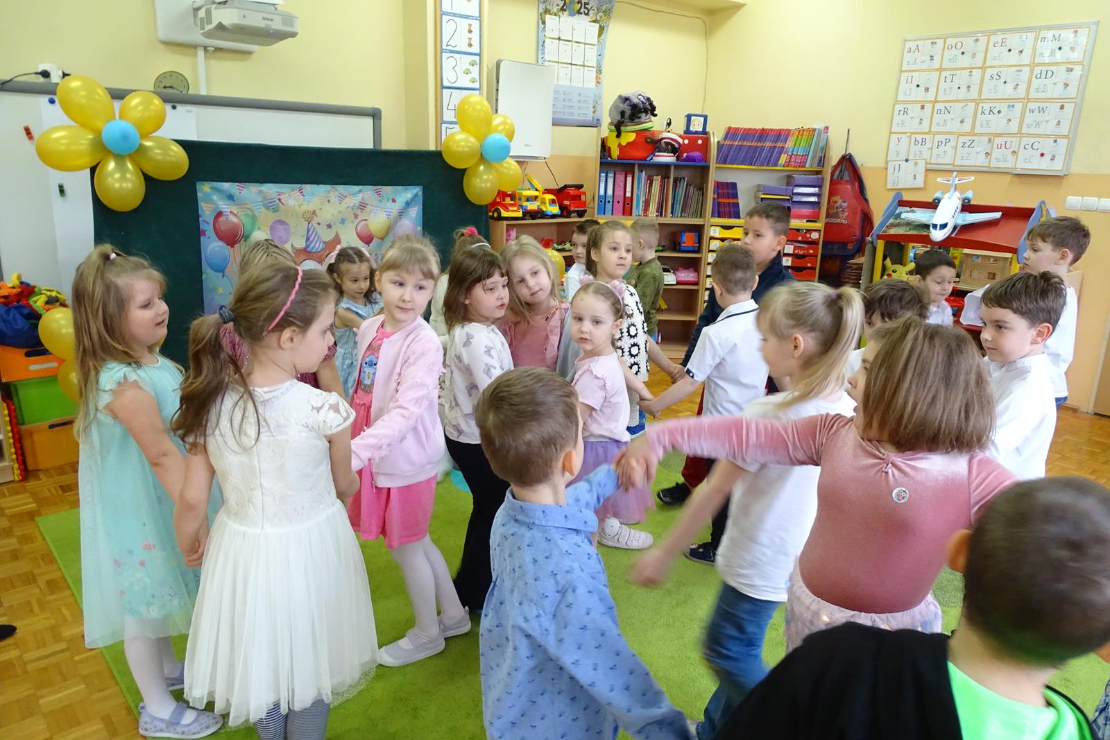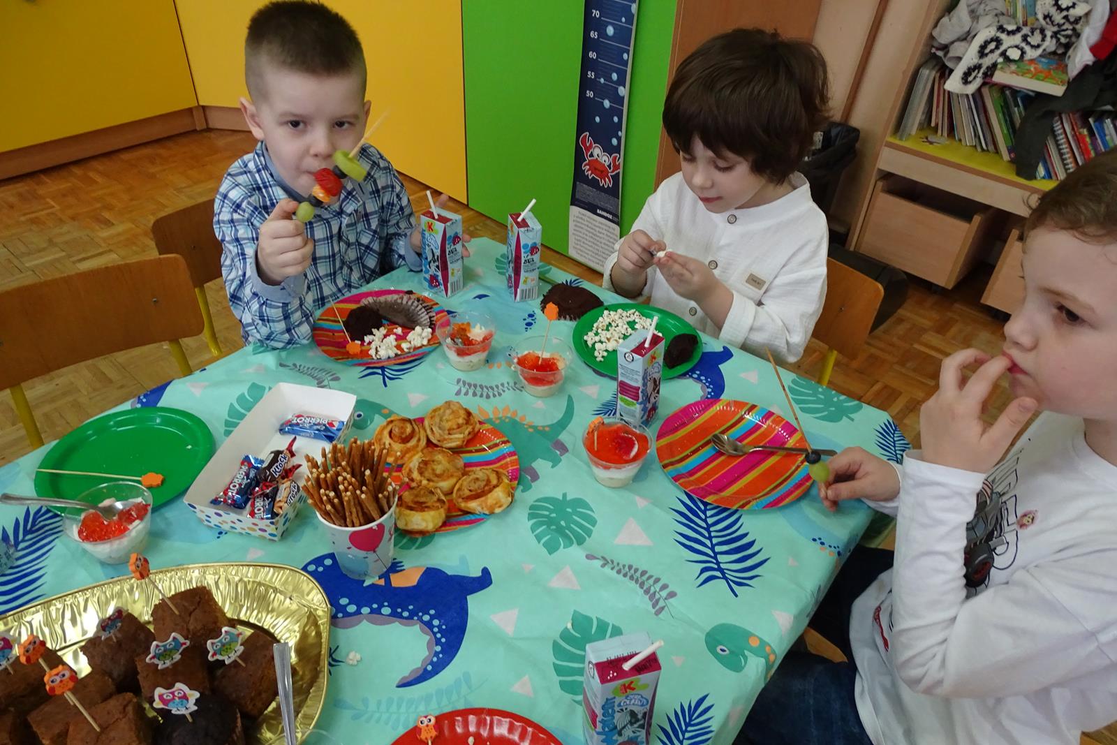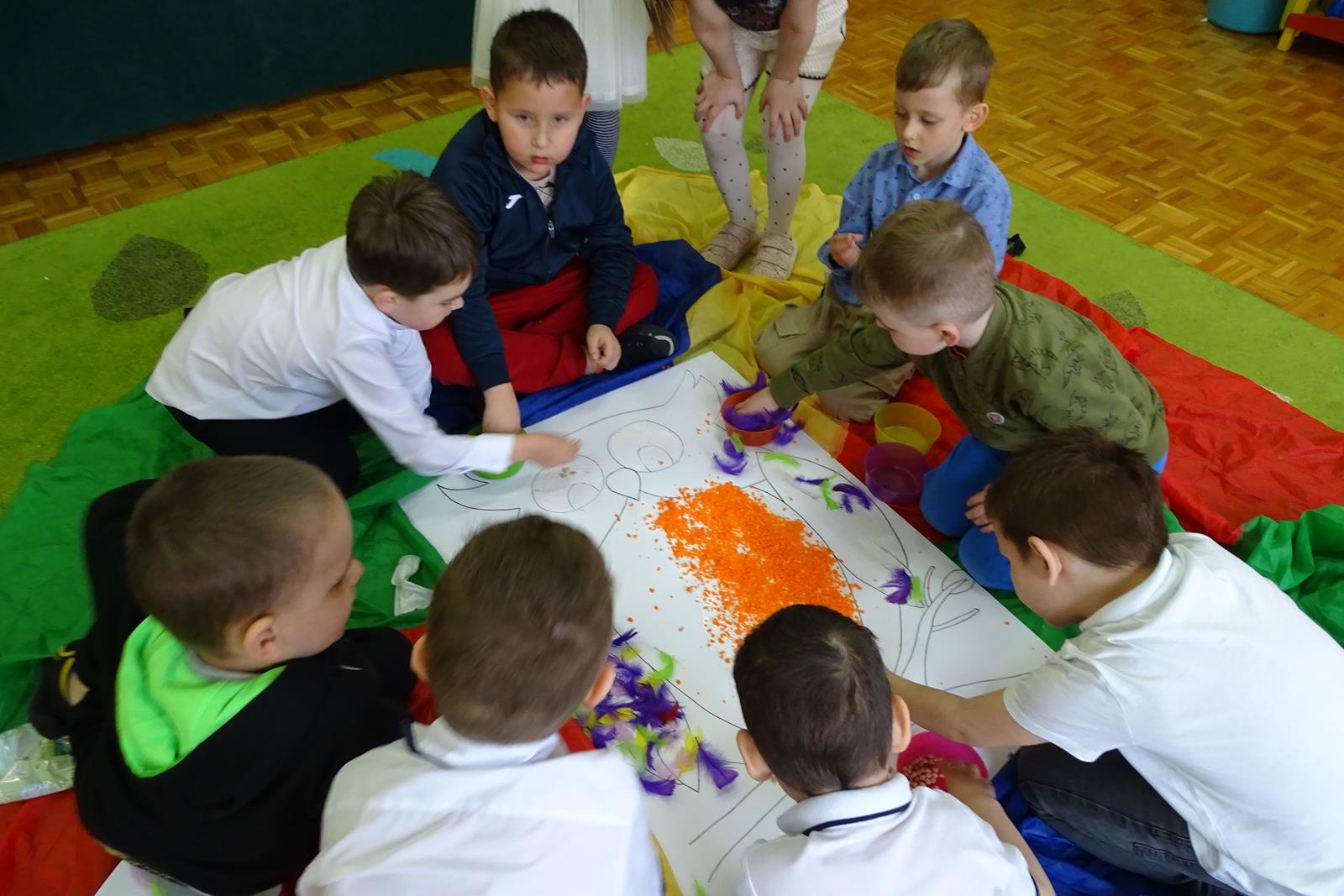 20 kwietnia w naszej sali zapanowała wyjątkowa atmosfera – świętowaliśmy Dzień Sowy, czyli urodziny naszej grupy „Sówki”! Był to dzień pełen radości, uśmiechów i wspólnego bycia razem. Dzieci przyszły odświętnie ubrane, co dodało wydarzeniu uroczystego charakteru. Ogromną niespodziankę przygotowali Rodzice – stoły wypełniły się pysznymi słodkościami i zdrowymi przekąskami, za co serdecznie dziękujemy!!! ;) Nie zabrakło także wspaniałych aktywności. Przedszkolaki z zaangażowaniem szukały sówek ze swoimi imionami, utrwalając przy tym czytanie globalne. Były radosne pląsy, zabawy ruchowe przy muzyce oraz gry integracyjne, które jeszcze bardziej zbliżyły naszą grupę. Wspólnie stworzyliśmy również dużą, sensoryczną sowę – symbol naszej grupy, która będzie przypominać nam o tym wyjątkowym dniu.