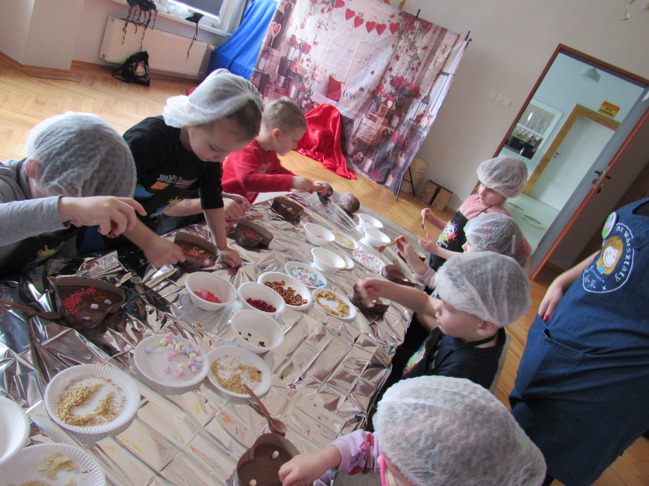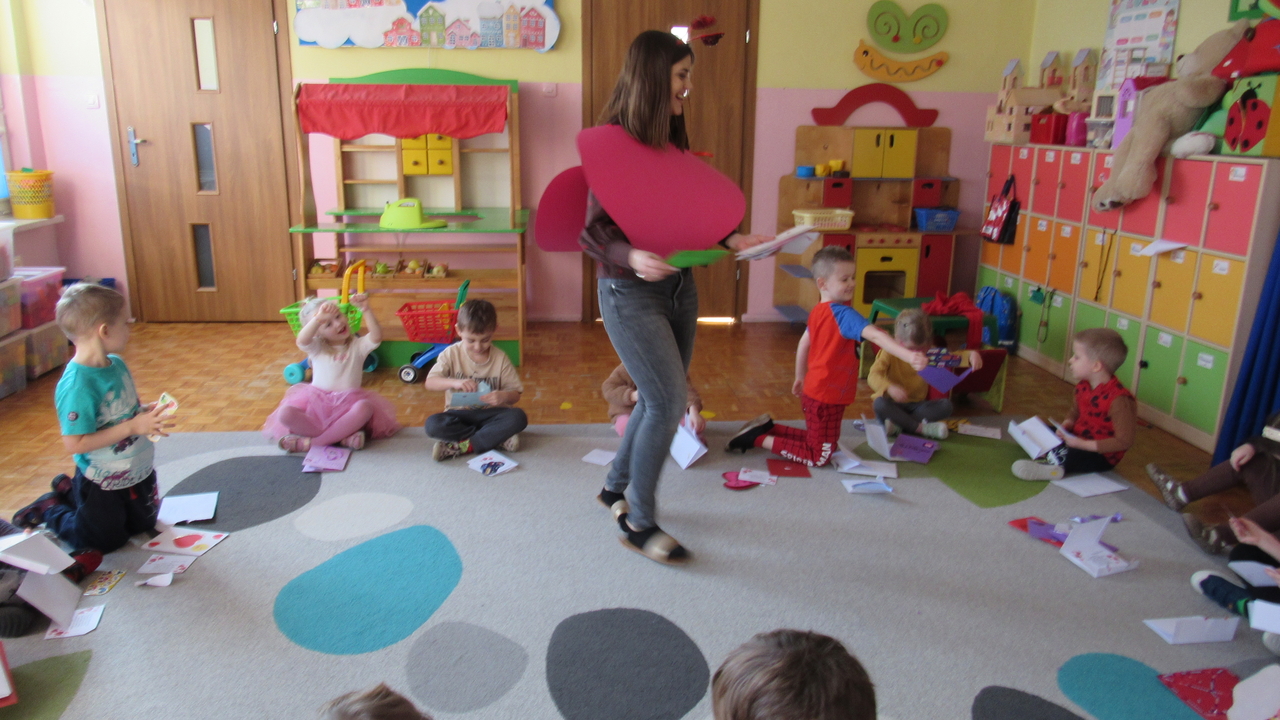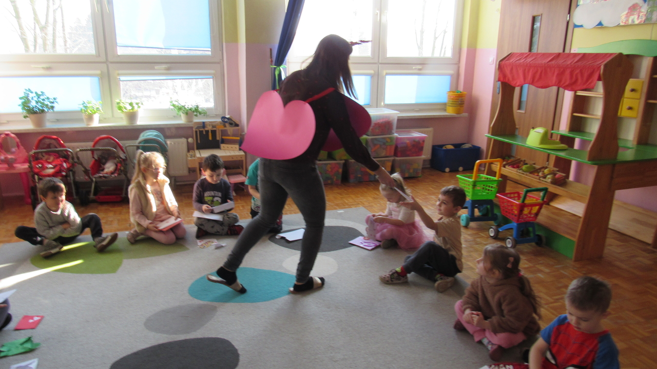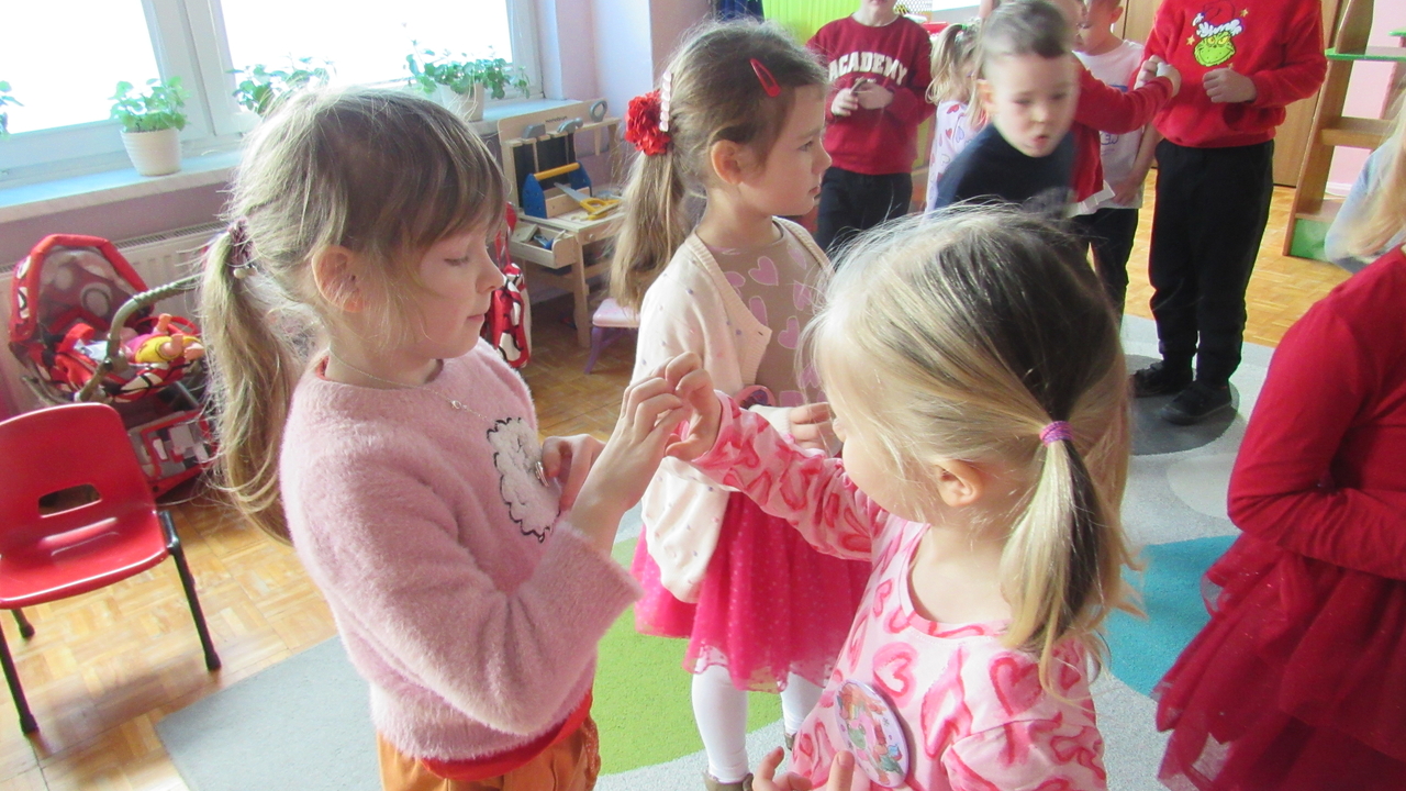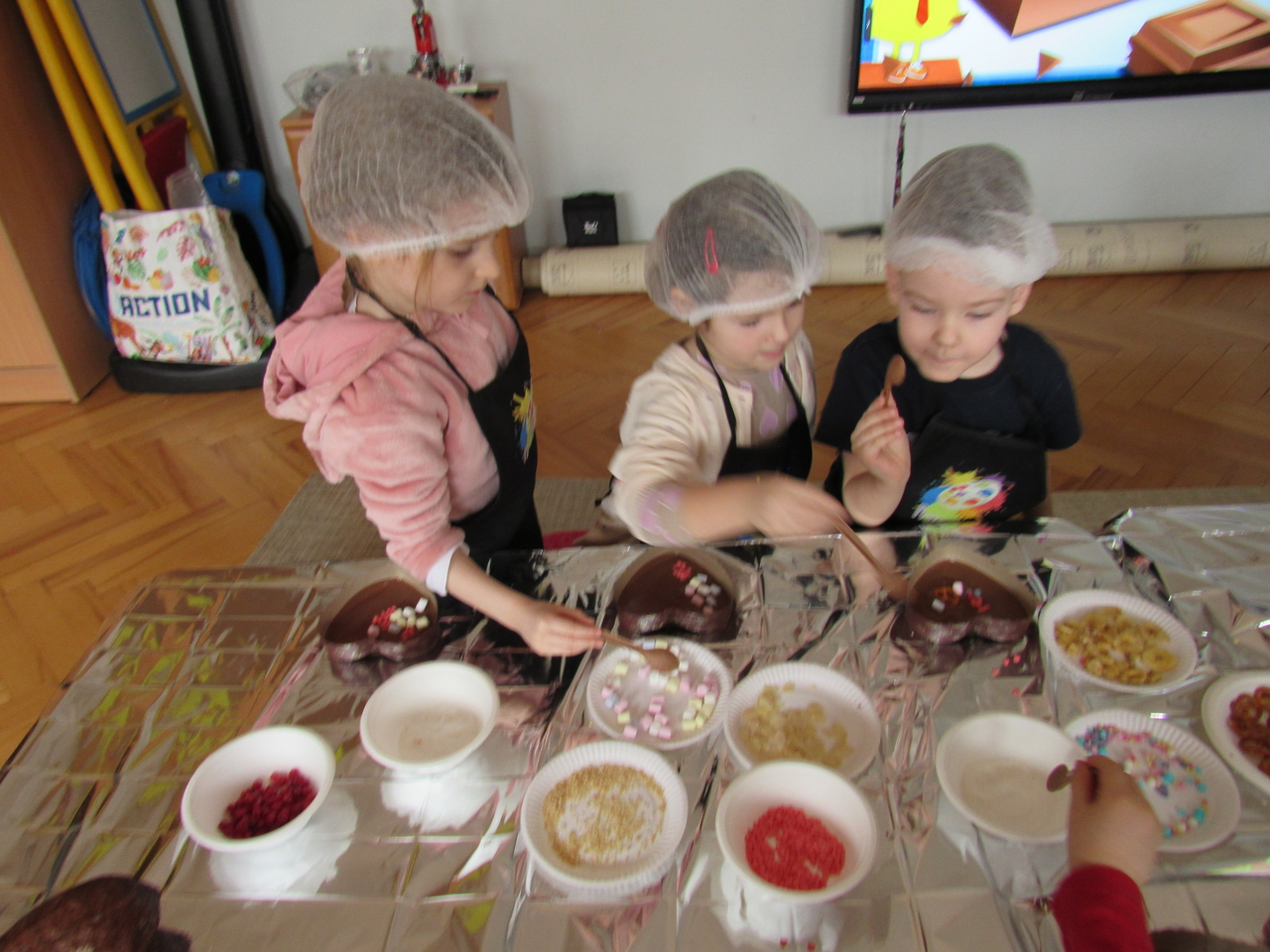 W Walentynki nasza grupa wyruszyła na wyjątkową, tajną misję – uruchomienie Fabryki Miłości. Już od samego rana w powietrzu czuć było ekscytację, bo każde dziecko otrzymało specjalne zadanie do wykonania. Aby fabryka mogła zacząć działać, trzeba było przejść przez kolejne etapy – wykazać się współpracą, życzliwością, sprytem i oczywiście ogromną dawką uśmiechu. Dzieci z zaangażowaniem rozwiązywały przygotowane wyzwania, pomagając sobie nawzajem i udowadniając, że prawdziwa moc miłości tkwi w działaniu. Każde wykonane zadanie przybliżało nas do wielkiego finału – uruchomienia magicznej maszyny produkującej miłość. Na zakończenie misji każdy uczestnik otrzymał wyjątkowe serduszko. To nie było zwykłe serce – po ściśnięciu „wytwarzało miłość”, przypominając, że dobro, ciepło i przyjaźń mamy zawsze w swoich rękach. Największą atrakcją dnia okazały się jednak warsztaty czekoladowe. Dzieci mogły własnoręcznie tworzyć słodkie przysmaki, dekorować je i oczywiście kosztować. Zapach czekolady unosił się w całej sali, a radość i duma z własnoręcznie wykonanych słodkości były bezcenne. To był dzień pełen uśmiechu, współpracy i serdeczności – prawdziwe święto przyjaźni i małych gestów, które mają wielką moc.