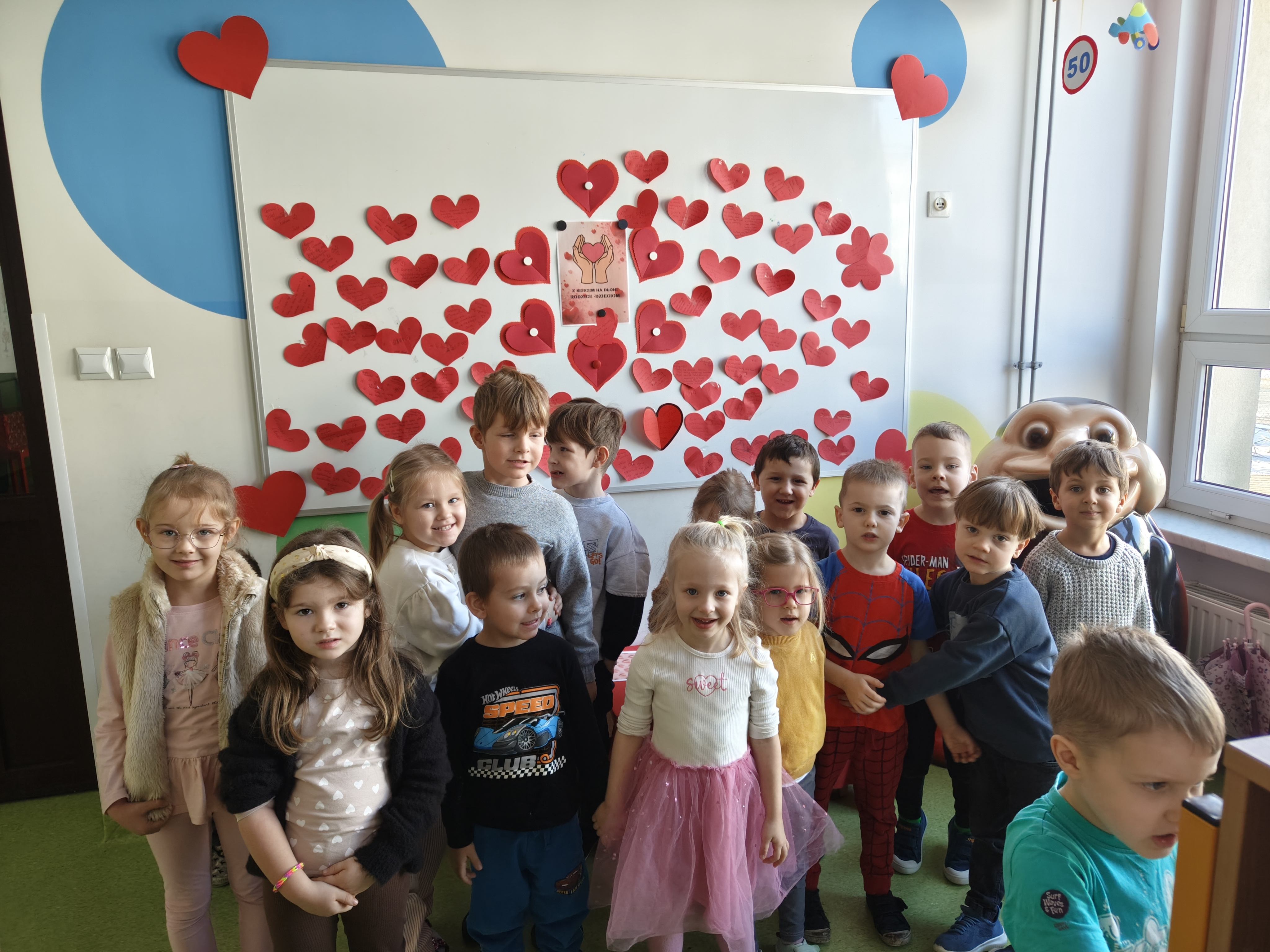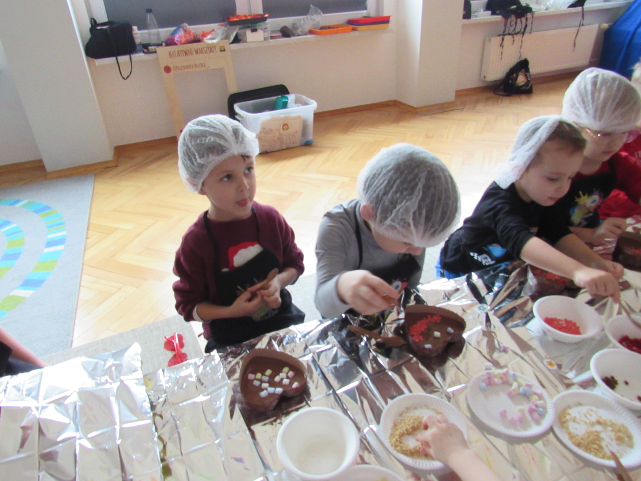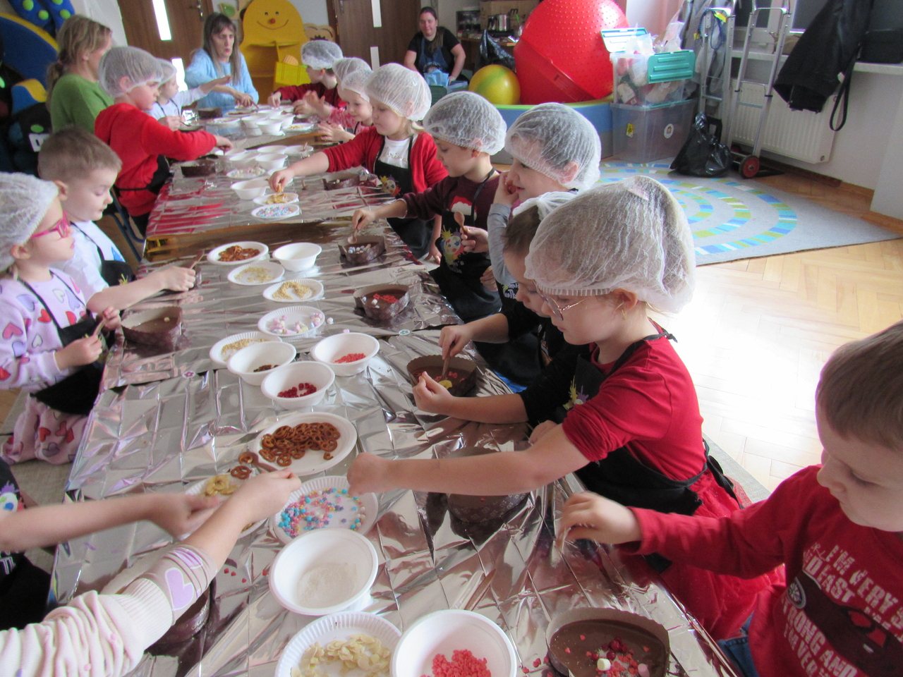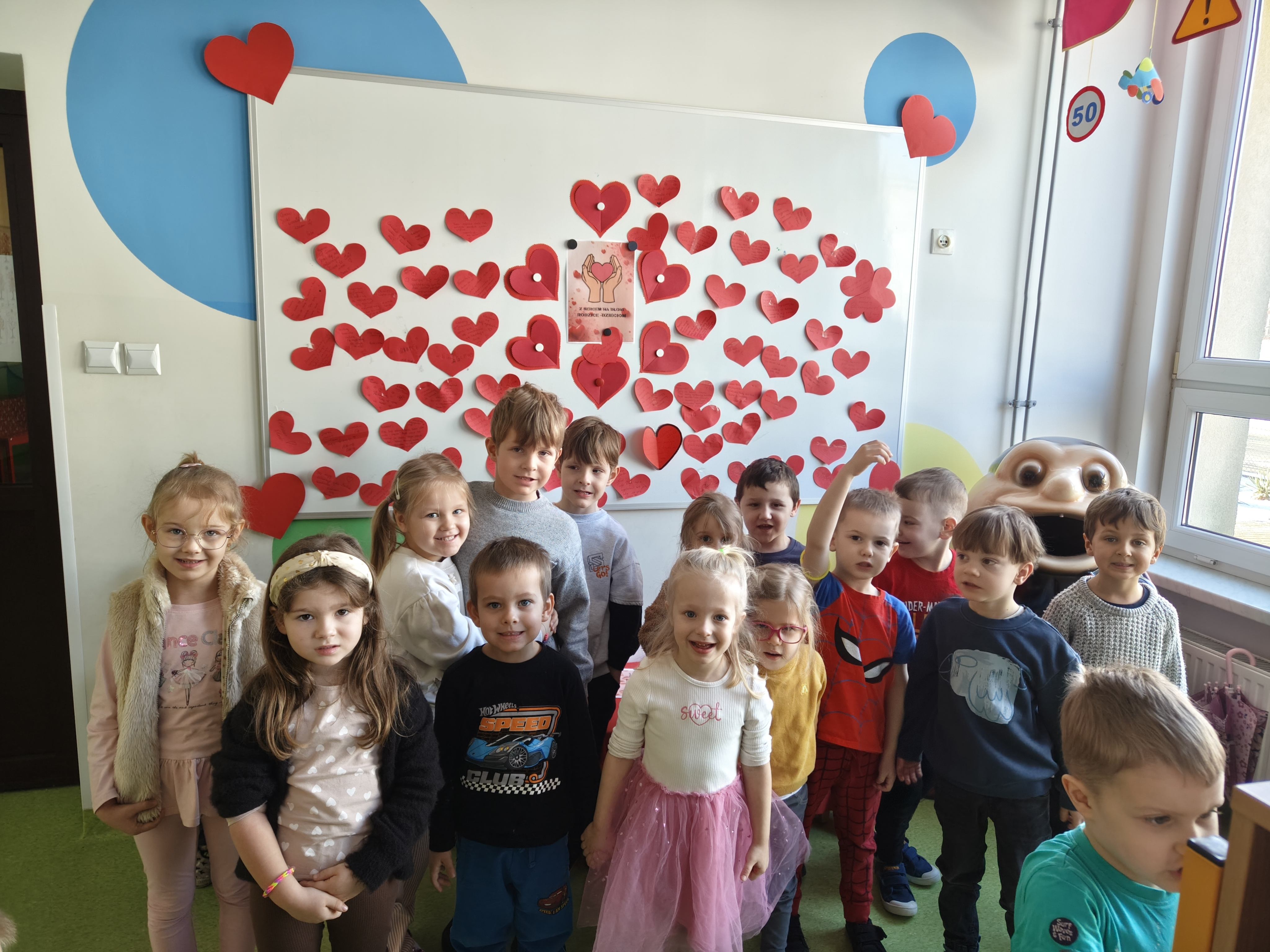 W Walentynki nasza grupa wyruszyła na wyjątkową, tajną misję – uruchomienie Fabryki Miłości. Już od samego rana w powietrzu czuć było ekscytację, bo każde dziecko otrzymało specjalne zadanie do wykonania. Aby fabryka mogła zacząć działać, trzeba było przejść przez kolejne etapy – wykazać się współpracą, życzliwością, sprytem i oczywiście ogromną dawką uśmiechu. Dzieci z zaangażowaniem rozwiązywały przygotowane wyzwania, pomagając sobie nawzajem i udowadniając, że prawdziwa moc miłości tkwi w działaniu. Każde wykonane zadanie przybliżało nas do wielkiego finału – uruchomienia magicznej maszyny produkującej miłość. Na zakończenie misji każdy uczestnik otrzymał wyjątkowe serduszko. To nie było zwykłe serce – po ściśnięciu „wytwarzało miłość”, przypominając, że dobro, ciepło i przyjaźń mamy zawsze w swoich rękach. Największą atrakcją dnia okazały się jednak warsztaty czekoladowe. Dzieci mogły własnoręcznie tworzyć słodkie przysmaki, dekorować je i oczywiście kosztować. Zapach czekolady unosił się w całej sali, a radość i duma z własnoręcznie wykonanych słodkości były bezcenne. To był dzień pełen uśmiechu, współpracy i serdeczności – prawdziwe święto przyjaźni i małych gestów, które mają wielką moc.