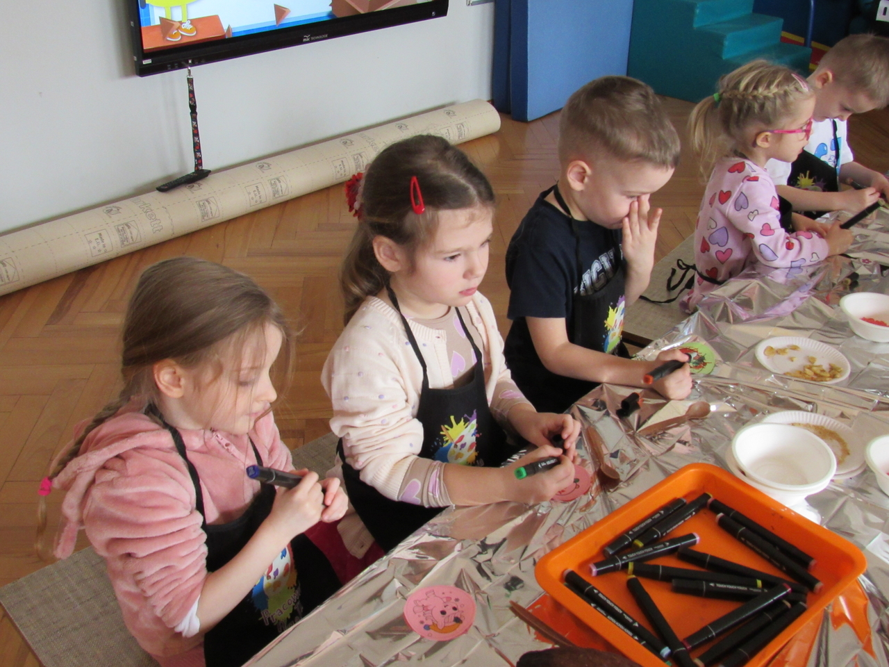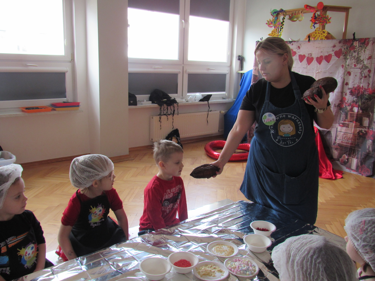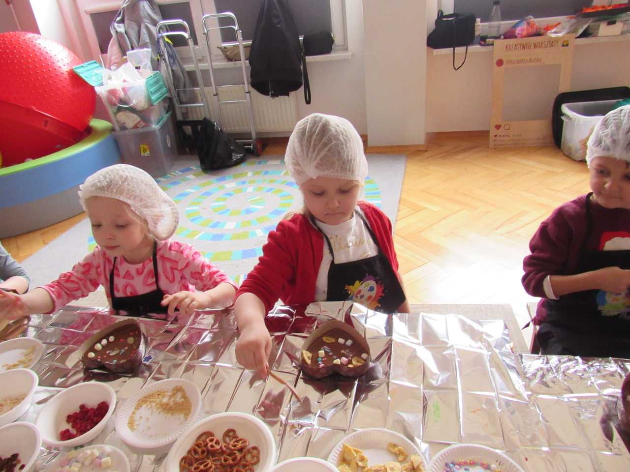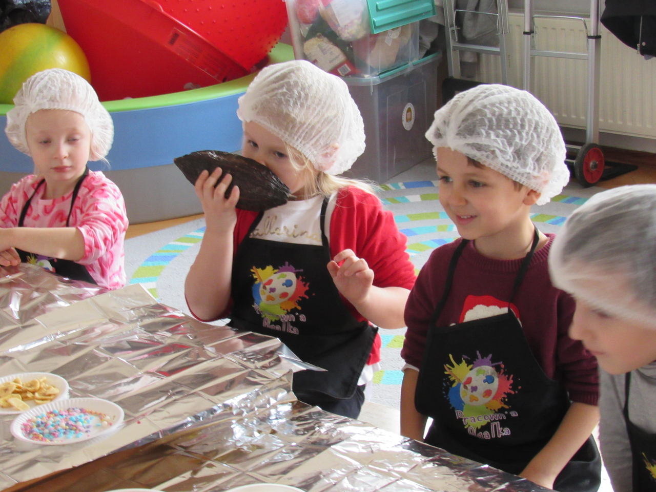 W Walentynki nasza grupa wyruszyła na wyjątkową, tajną misję – uruchomienie Fabryki Miłości. Już od samego rana w powietrzu czuć było ekscytację, bo każde dziecko otrzymało specjalne zadanie do wykonania. Aby fabryka mogła zacząć działać, trzeba było przejść przez kolejne etapy – wykazać się współpracą, życzliwością, sprytem i oczywiście ogromną dawką uśmiechu. Dzieci z zaangażowaniem rozwiązywały przygotowane wyzwania, pomagając sobie nawzajem i udowadniając, że prawdziwa moc miłości tkwi w działaniu. Każde wykonane zadanie przybliżało nas do wielkiego finału – uruchomienia magicznej maszyny produkującej miłość. Na zakończenie misji każdy uczestnik otrzymał wyjątkowe serduszko. To nie było zwykłe serce – po ściśnięciu „wytwarzało miłość”, przypominając, że dobro, ciepło i przyjaźń mamy zawsze w swoich rękach. Największą atrakcją dnia okazały się jednak warsztaty czekoladowe. Dzieci mogły własnoręcznie tworzyć słodkie przysmaki, dekorować je i oczywiście kosztować. Zapach czekolady unosił się w całej sali, a radość i duma z własnoręcznie wykonanych słodkości były bezcenne. To był dzień pełen uśmiechu, współpracy i serdeczności – prawdziwe święto przyjaźni i małych gestów, które mają wielką moc.