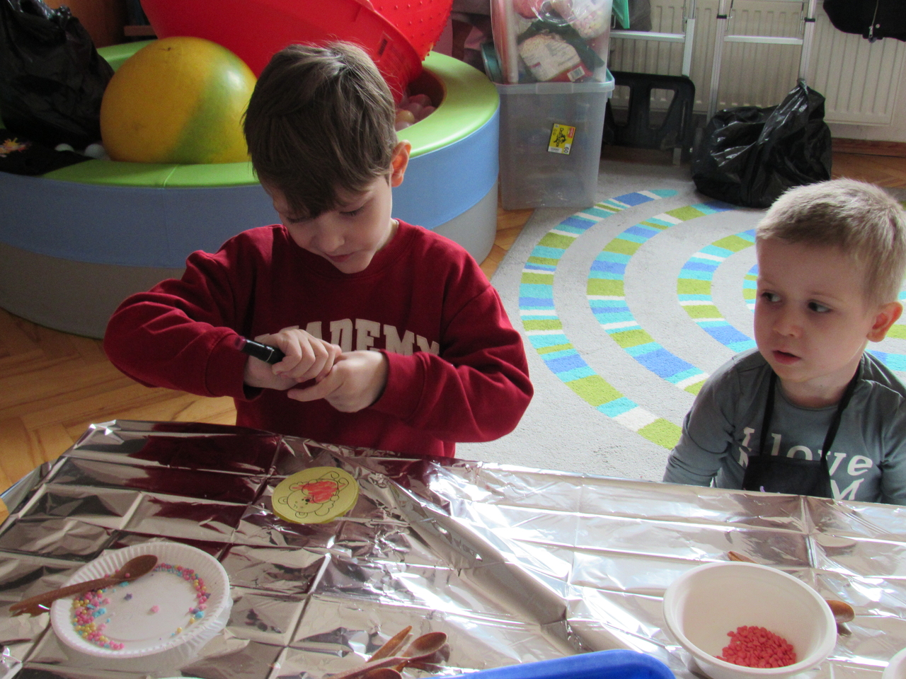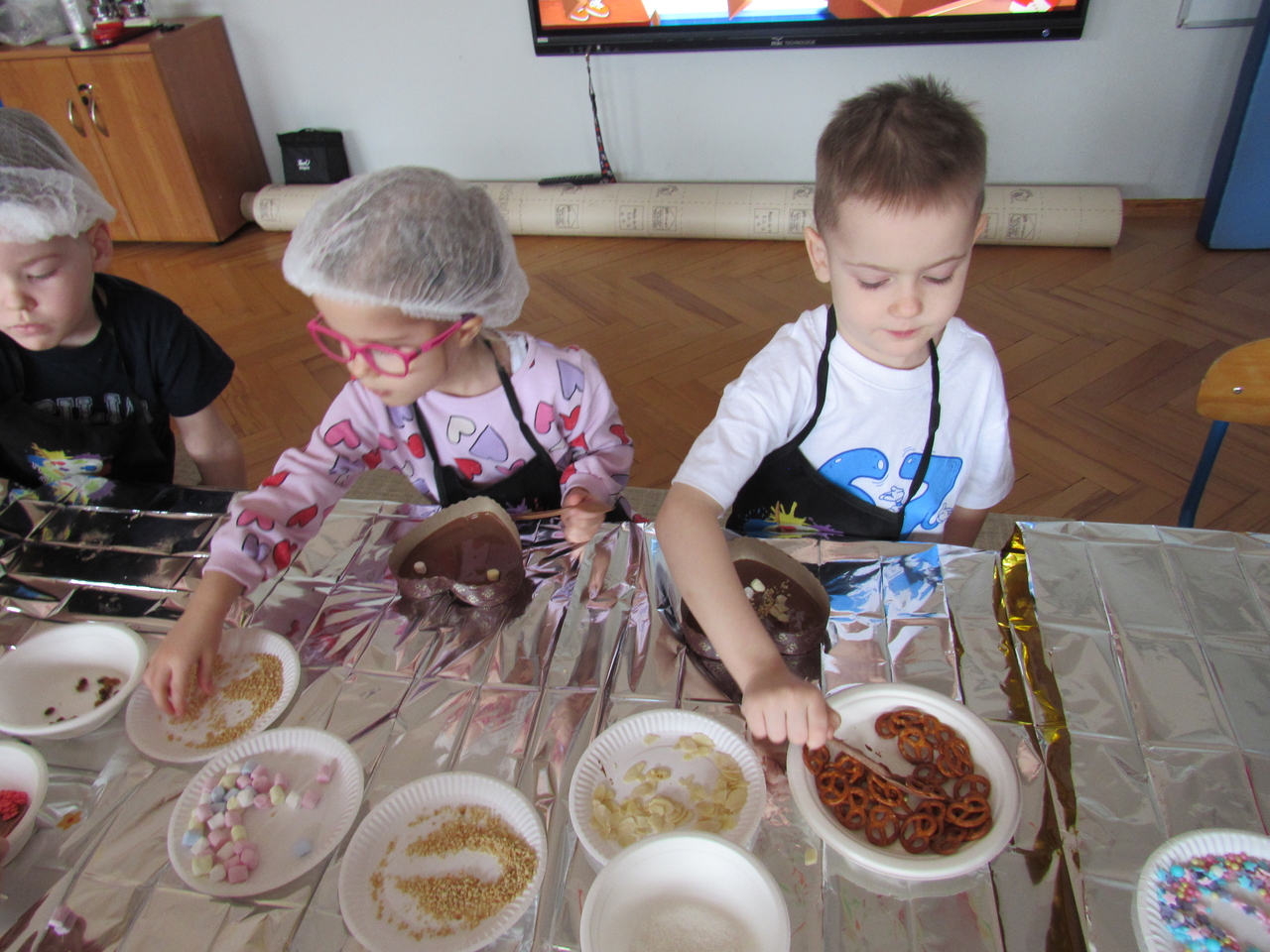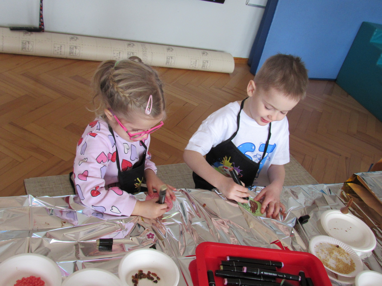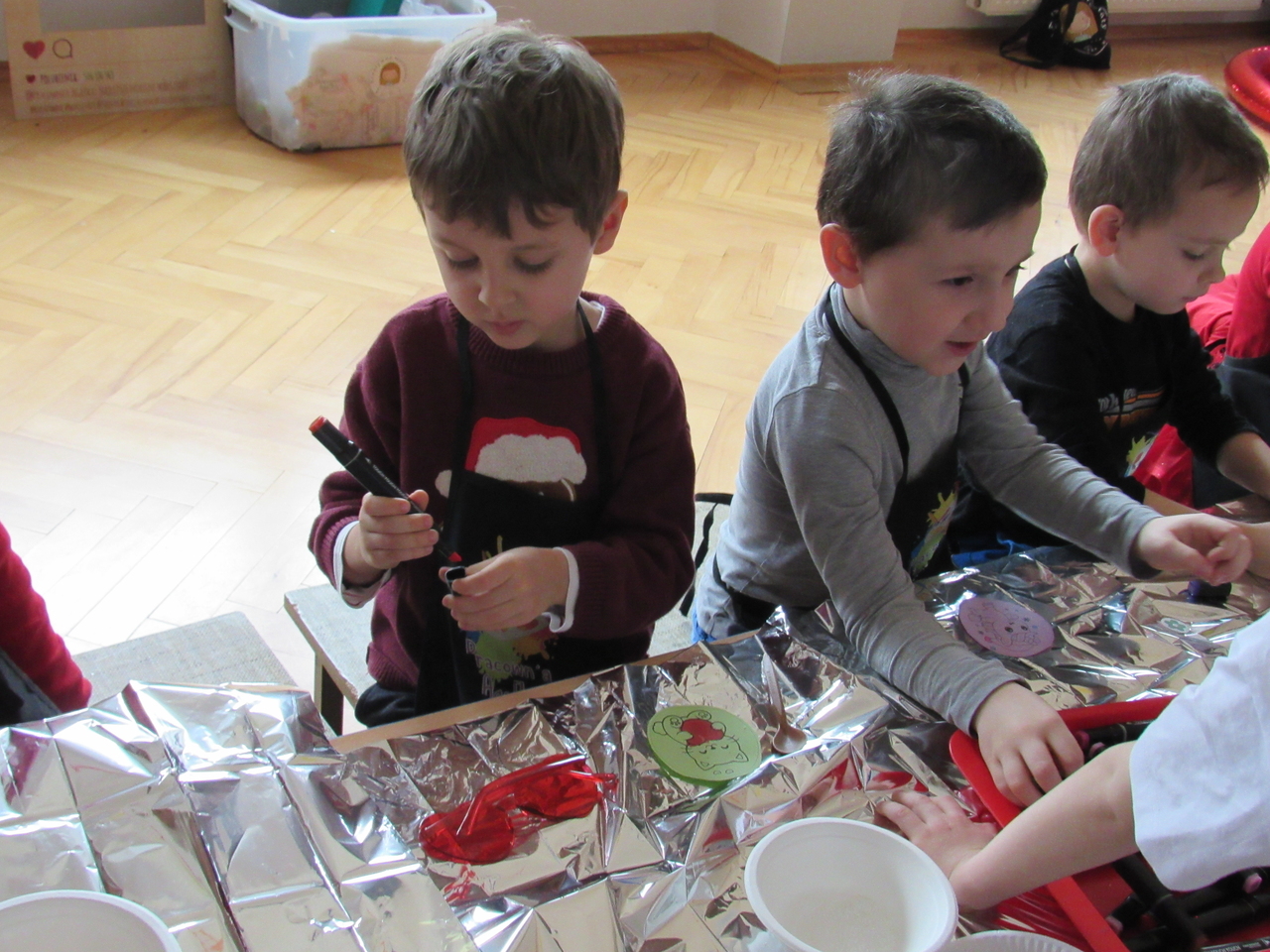 W Walentynki nasza grupa wyruszyła na wyjątkową, tajną misję – uruchomienie Fabryki Miłości. Już od samego rana w powietrzu czuć było ekscytację, bo każde dziecko otrzymało specjalne zadanie do wykonania. Aby fabryka mogła zacząć działać, trzeba było przejść przez kolejne etapy – wykazać się współpracą, życzliwością, sprytem i oczywiście ogromną dawką uśmiechu. Dzieci z zaangażowaniem rozwiązywały przygotowane wyzwania, pomagając sobie nawzajem i udowadniając, że prawdziwa moc miłości tkwi w działaniu. Każde wykonane zadanie przybliżało nas do wielkiego finału – uruchomienia magicznej maszyny produkującej miłość. Na zakończenie misji każdy uczestnik otrzymał wyjątkowe serduszko. To nie było zwykłe serce – po ściśnięciu „wytwarzało miłość”, przypominając, że dobro, ciepło i przyjaźń mamy zawsze w swoich rękach. Największą atrakcją dnia okazały się jednak warsztaty czekoladowe. Dzieci mogły własnoręcznie tworzyć słodkie przysmaki, dekorować je i oczywiście kosztować. Zapach czekolady unosił się w całej sali, a radość i duma z własnoręcznie wykonanych słodkości były bezcenne. To był dzień pełen uśmiechu, współpracy i serdeczności – prawdziwe święto przyjaźni i małych gestów, które mają wielką moc.