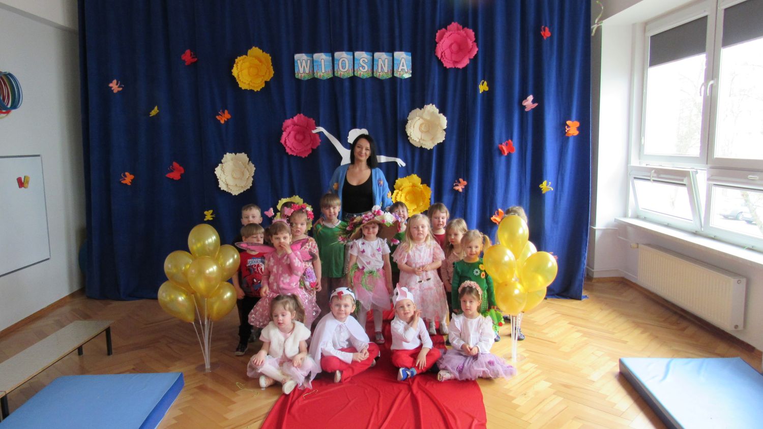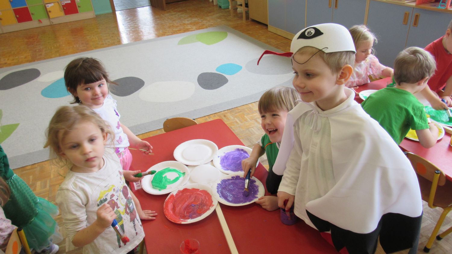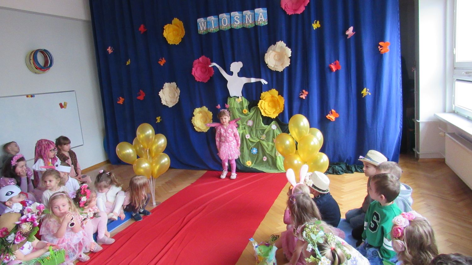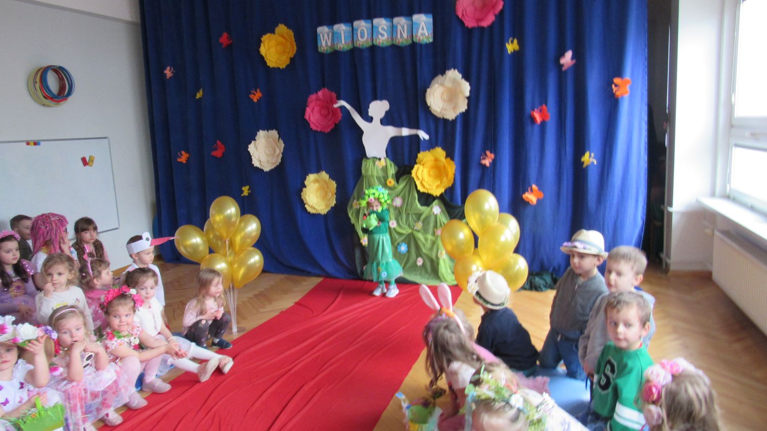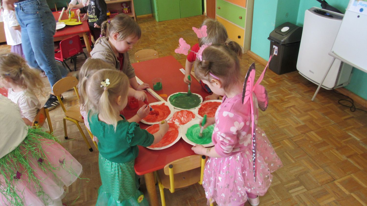 Pierwszego dnia wiosny w przedszkolu panowała radosna i kolorowa atmosfera. Dzieci z entuzjazmem powitały nową porę roku, biorąc udział w wielu ciekawych aktywnościach. Jednym z najważniejszych wydarzeń był pokaz mody, podczas którego mali uczestnicy zaprezentowali swoje najpiękniejsze wiosenne stroje pełne barw, kwiatów i lekkich tkanin. Przedszkolaki rozwijały również swoją kreatywność, malując kwiaty, które następnie ozdobiły korytarze przedszkola, wprowadzając do nich prawdziwie wiosenny klimat. Nie zabrakło także zabaw ruchowych, dzieci z radością „łowiły rybki”, nawijając wędkę na rękę, co sprawiło im wiele śmiechu i satysfakcji. Wspólne śpiewanie wiosennych piosenek było okazją do przywołania Pani Wiosny i jeszcze większego poczucia radości z nadejścia cieplejszych dni. To był dzień pełen uśmiechów, zabawy i pozytywnej energii.
