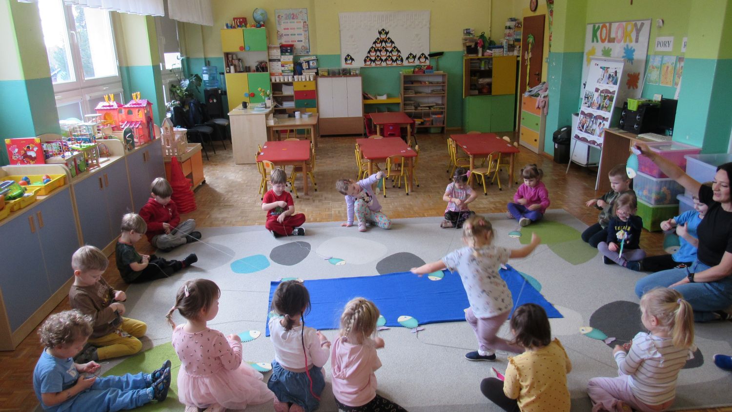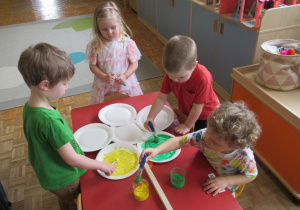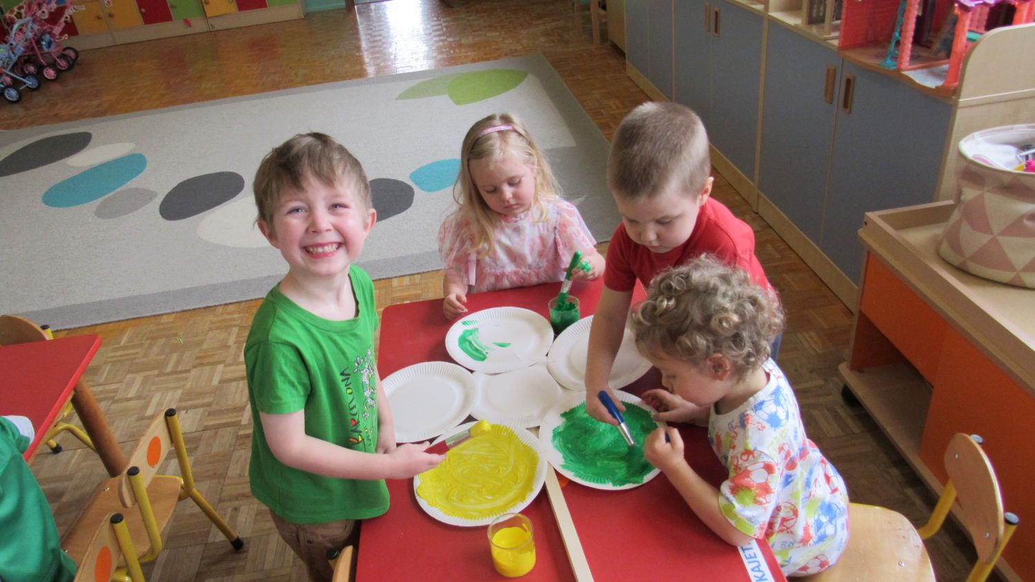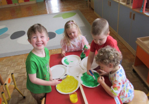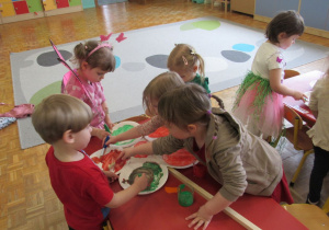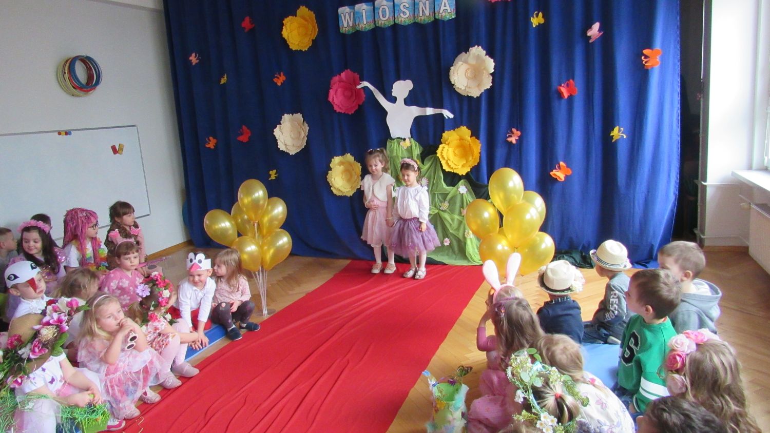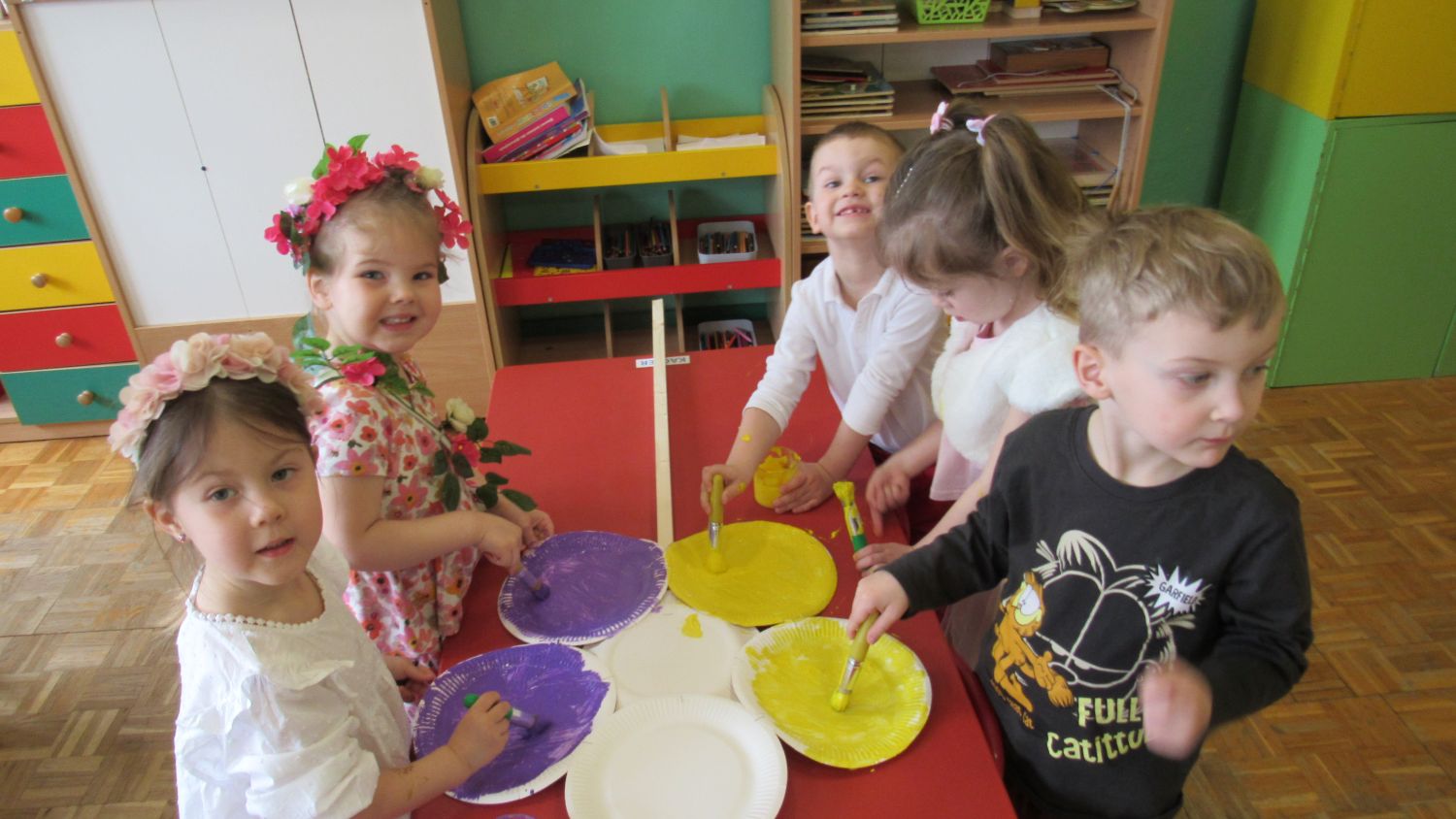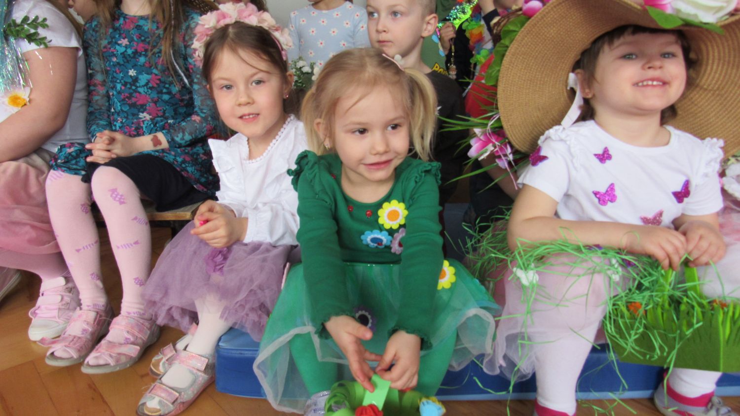 Pierwszego dnia wiosny w przedszkolu panowała radosna i kolorowa atmosfera. Dzieci z entuzjazmem powitały nową porę roku, biorąc udział w wielu ciekawych aktywnościach. Jednym z najważniejszych wydarzeń był pokaz mody, podczas którego mali uczestnicy zaprezentowali swoje najpiękniejsze wiosenne stroje pełne barw, kwiatów i lekkich tkanin. Przedszkolaki rozwijały również swoją kreatywność, malując kwiaty, które następnie ozdobiły korytarze przedszkola, wprowadzając do nich prawdziwie wiosenny klimat. Nie zabrakło także zabaw ruchowych, dzieci z radością „łowiły rybki”, nawijając wędkę na rękę, co sprawiło im wiele śmiechu i satysfakcji. Wspólne śpiewanie wiosennych piosenek było okazją do przywołania Pani Wiosny i jeszcze większego poczucia radości z nadejścia cieplejszych dni. To był dzień pełen uśmiechów, zabawy i pozytywnej energii.
