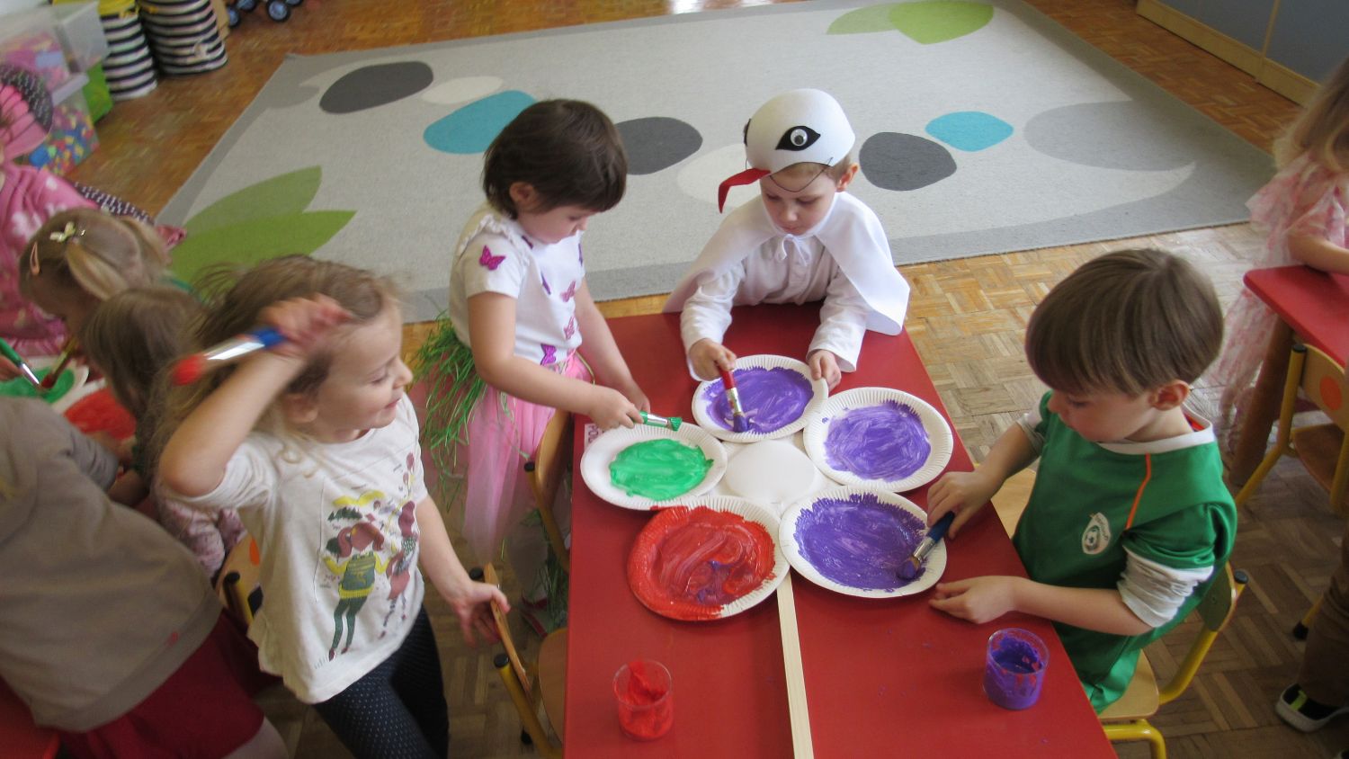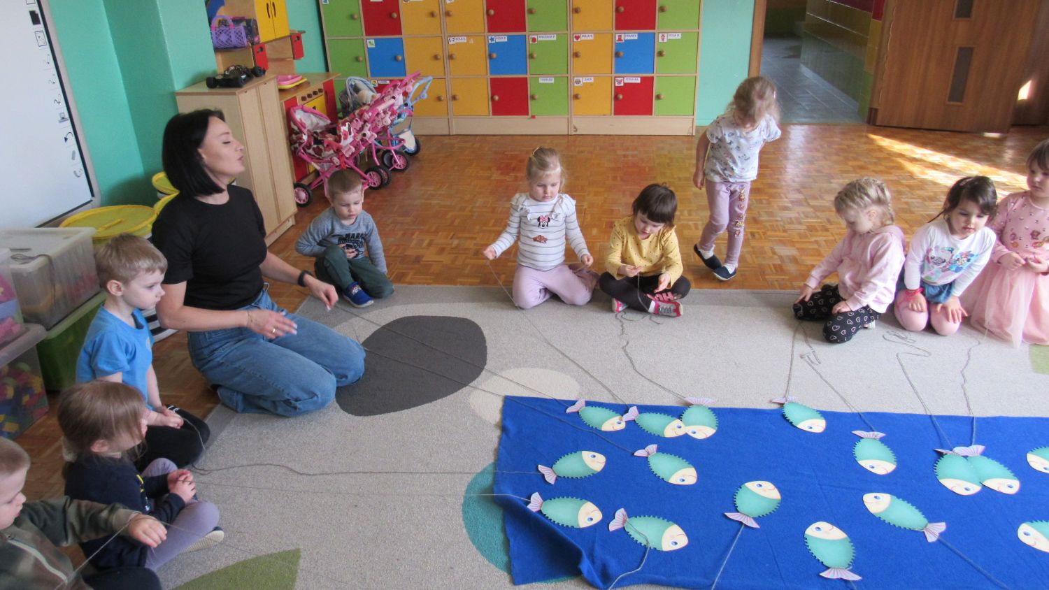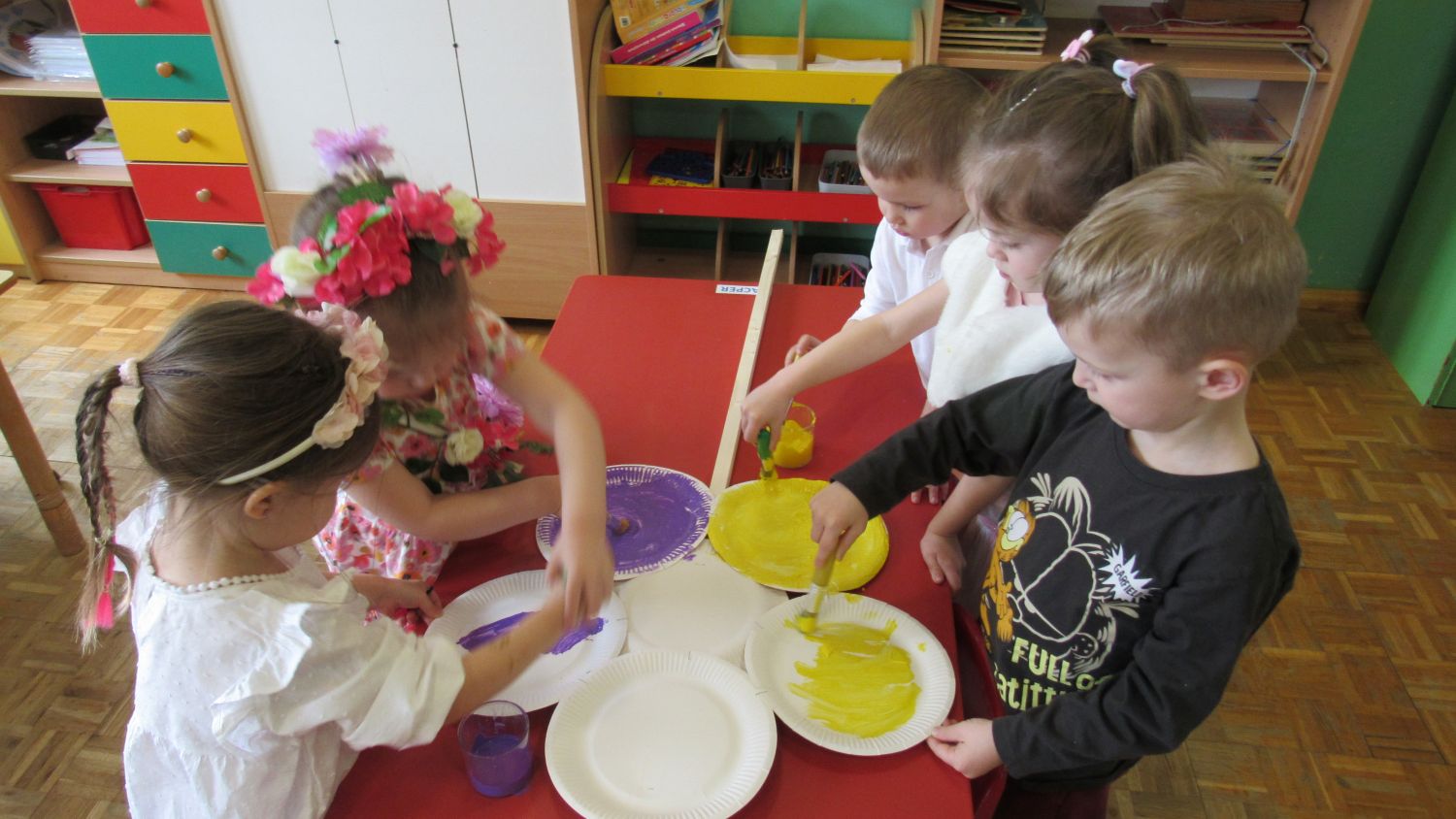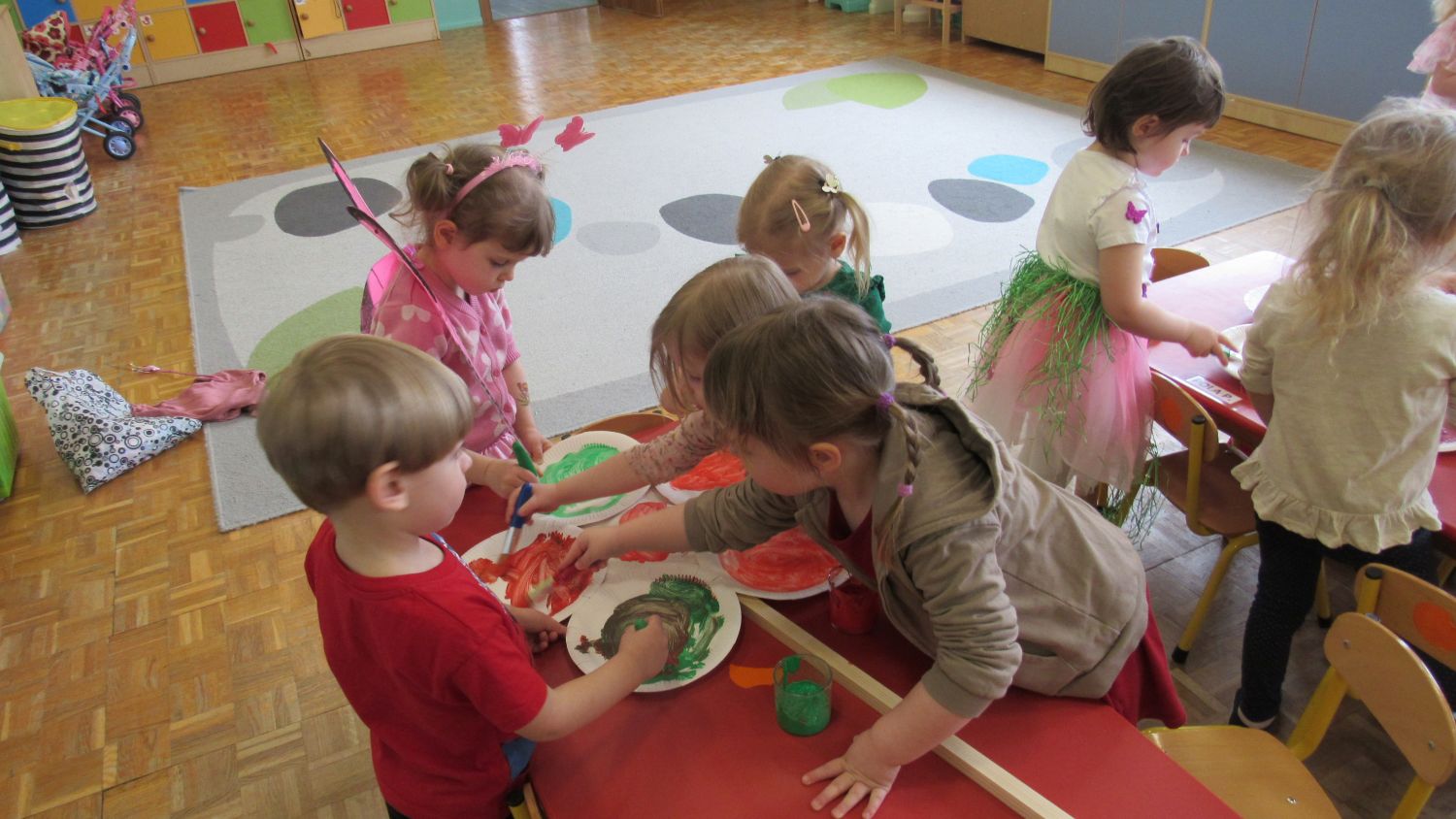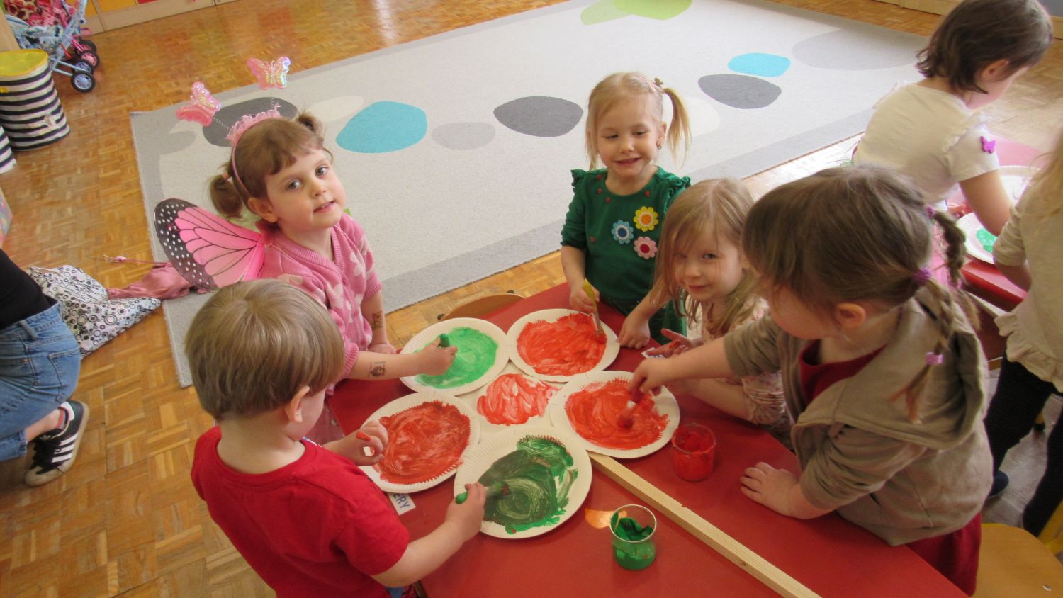 Pierwszego dnia wiosny w przedszkolu panowała radosna i kolorowa atmosfera. Dzieci z entuzjazmem powitały nową porę roku, biorąc udział w wielu ciekawych aktywnościach. Jednym z najważniejszych wydarzeń był pokaz mody, podczas którego mali uczestnicy zaprezentowali swoje najpiękniejsze wiosenne stroje pełne barw, kwiatów i lekkich tkanin. Przedszkolaki rozwijały również swoją kreatywność, malując kwiaty, które następnie ozdobiły korytarze przedszkola, wprowadzając do nich prawdziwie wiosenny klimat. Nie zabrakło także zabaw ruchowych, dzieci z radością „łowiły rybki”, nawijając wędkę na rękę, co sprawiło im wiele śmiechu i satysfakcji. Wspólne śpiewanie wiosennych piosenek było okazją do przywołania Pani Wiosny i jeszcze większego poczucia radości z nadejścia cieplejszych dni. To był dzień pełen uśmiechów, zabawy i pozytywnej energii.