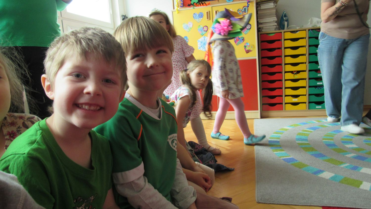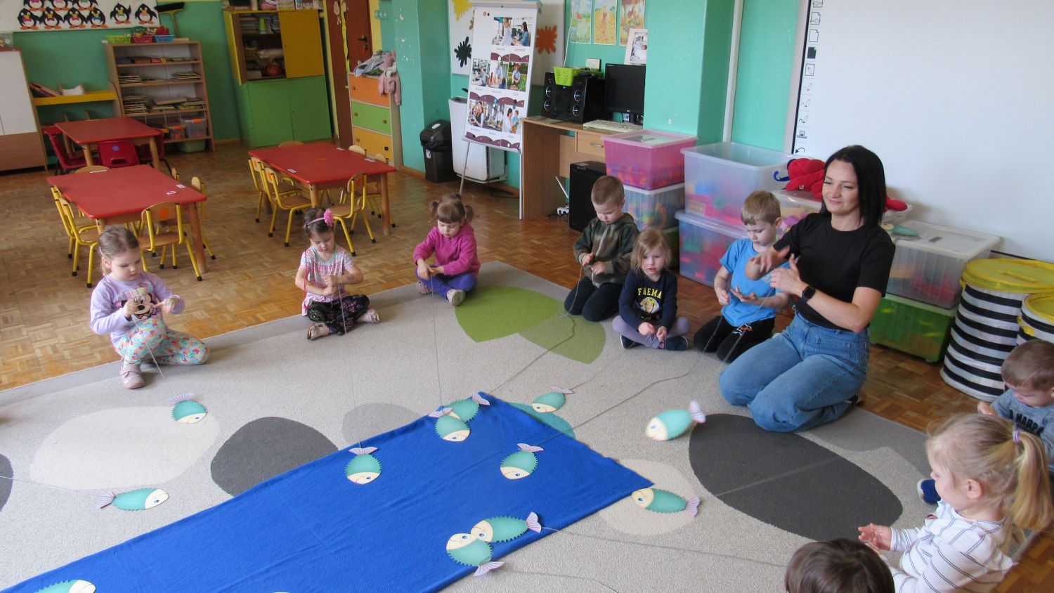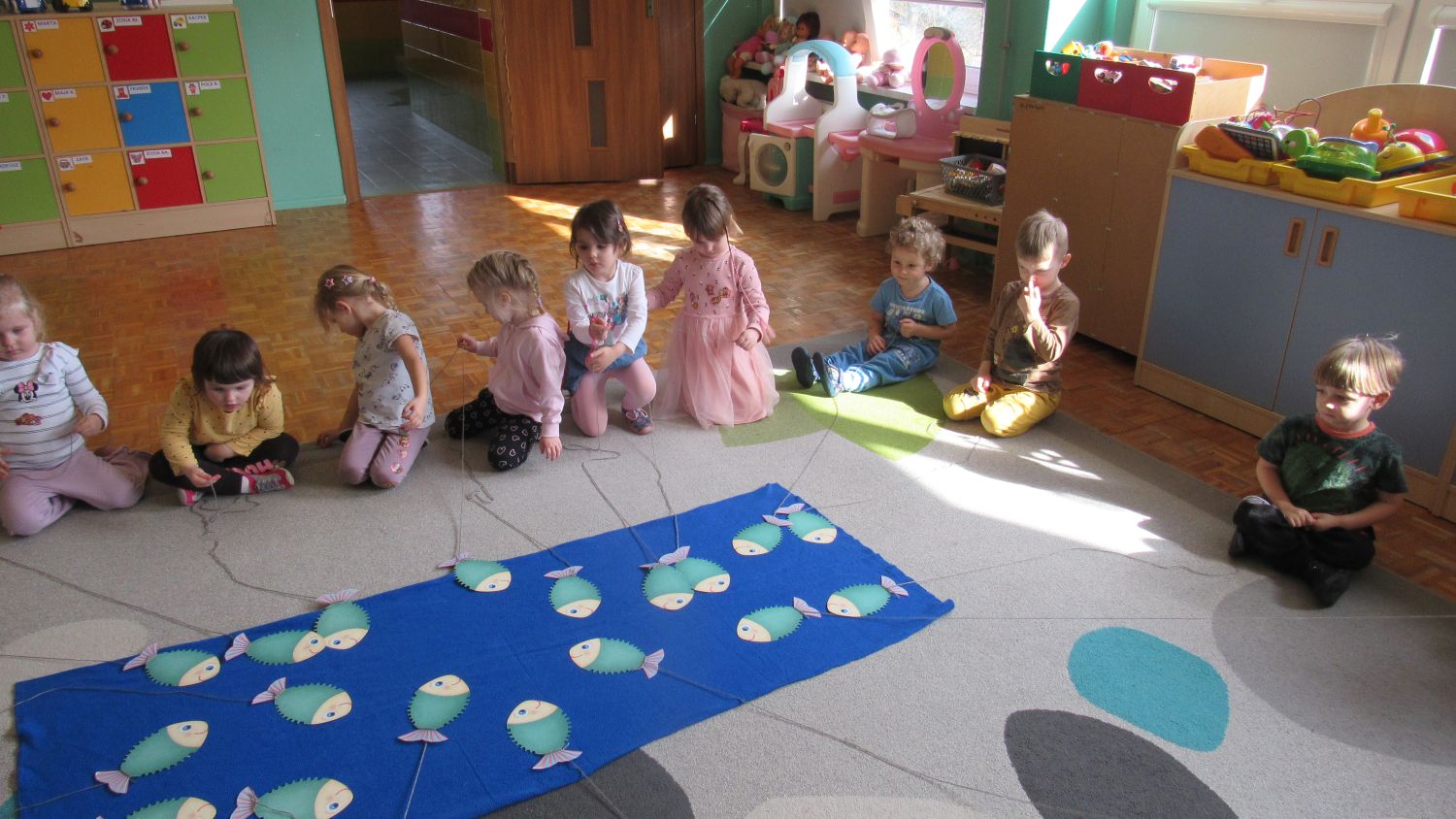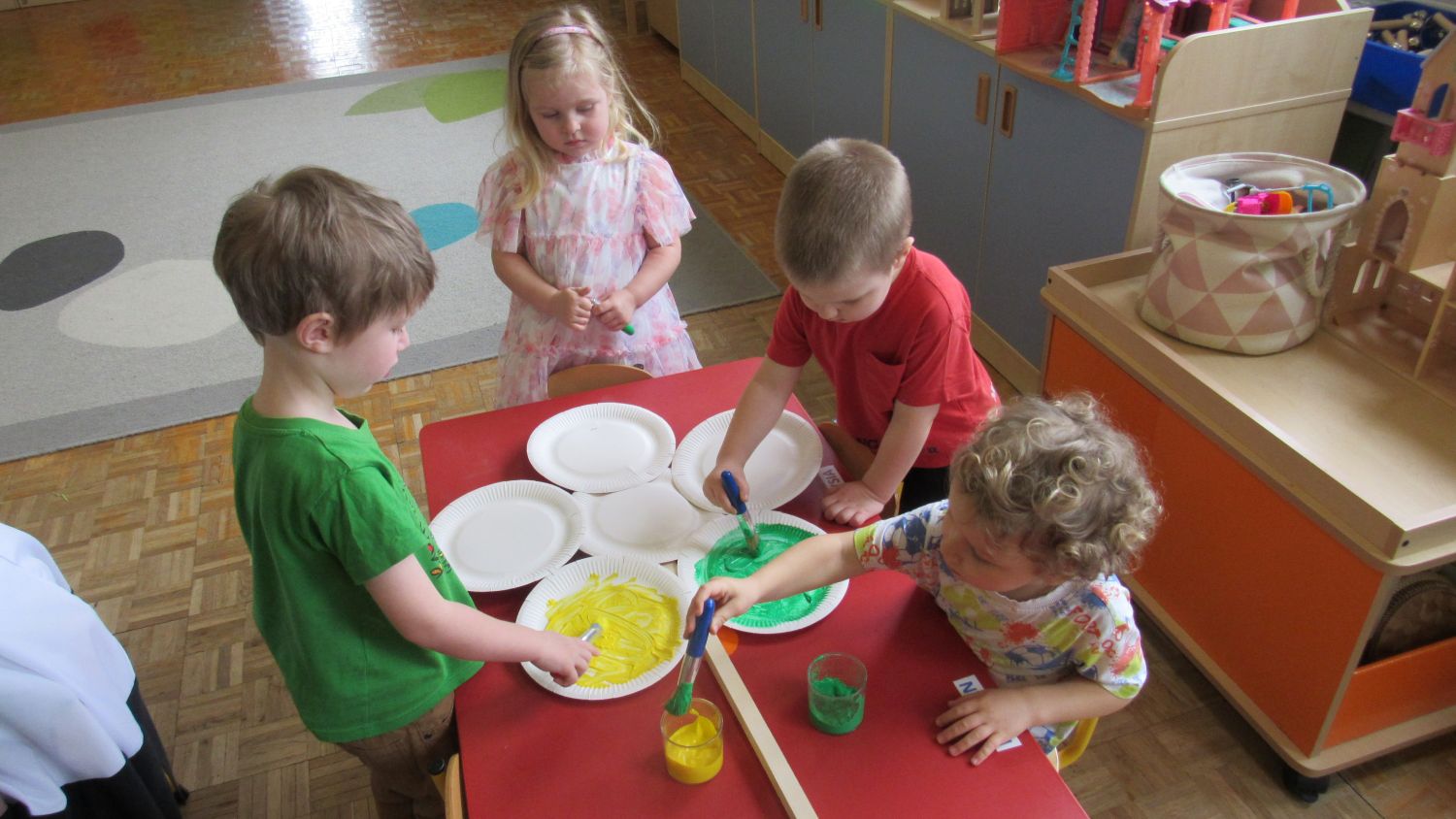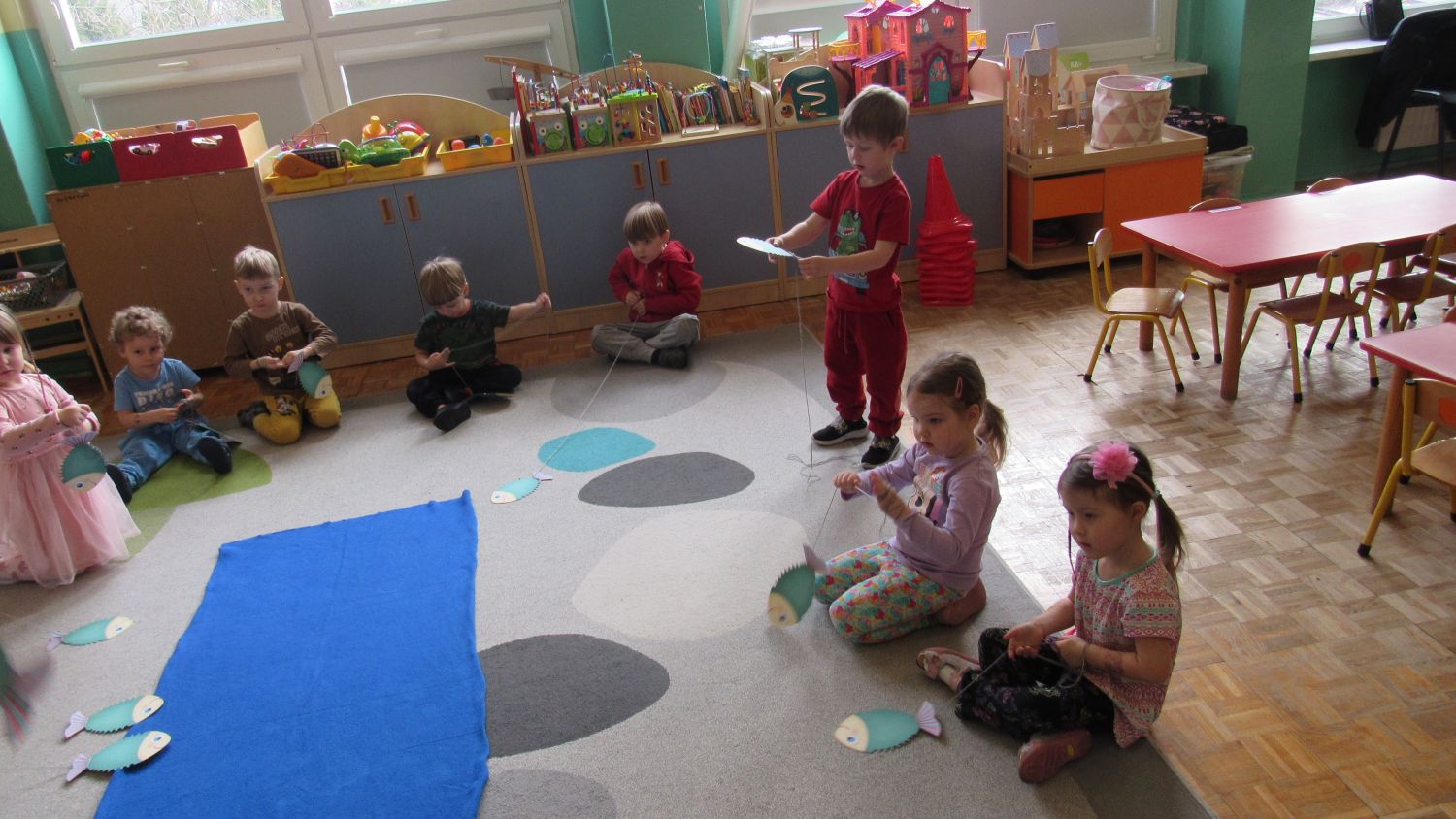 Pierwszego dnia wiosny w przedszkolu panowała radosna i kolorowa atmosfera. Dzieci z entuzjazmem powitały nową porę roku, biorąc udział w wielu ciekawych aktywnościach. Jednym z najważniejszych wydarzeń był pokaz mody, podczas którego mali uczestnicy zaprezentowali swoje najpiękniejsze wiosenne stroje pełne barw, kwiatów i lekkich tkanin. Przedszkolaki rozwijały również swoją kreatywność, malując kwiaty, które następnie ozdobiły korytarze przedszkola, wprowadzając do nich prawdziwie wiosenny klimat. Nie zabrakło także zabaw ruchowych, dzieci z radością „łowiły rybki”, nawijając wędkę na rękę, co sprawiło im wiele śmiechu i satysfakcji. Wspólne śpiewanie wiosennych piosenek było okazją do przywołania Pani Wiosny i jeszcze większego poczucia radości z nadejścia cieplejszych dni. To był dzień pełen uśmiechów, zabawy i pozytywnej energii.