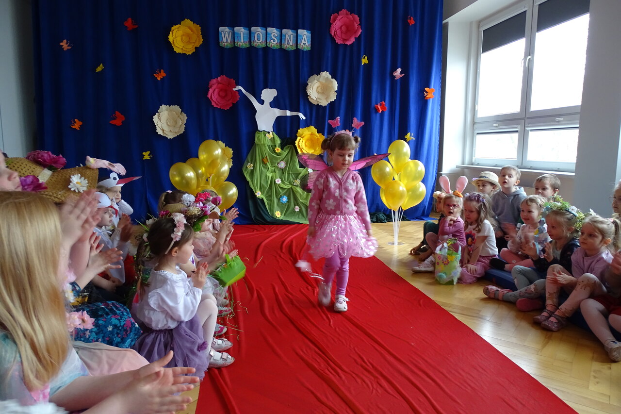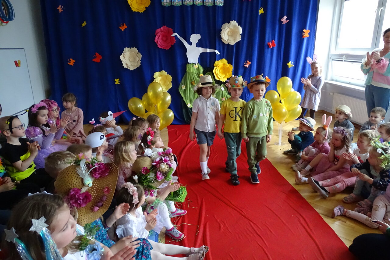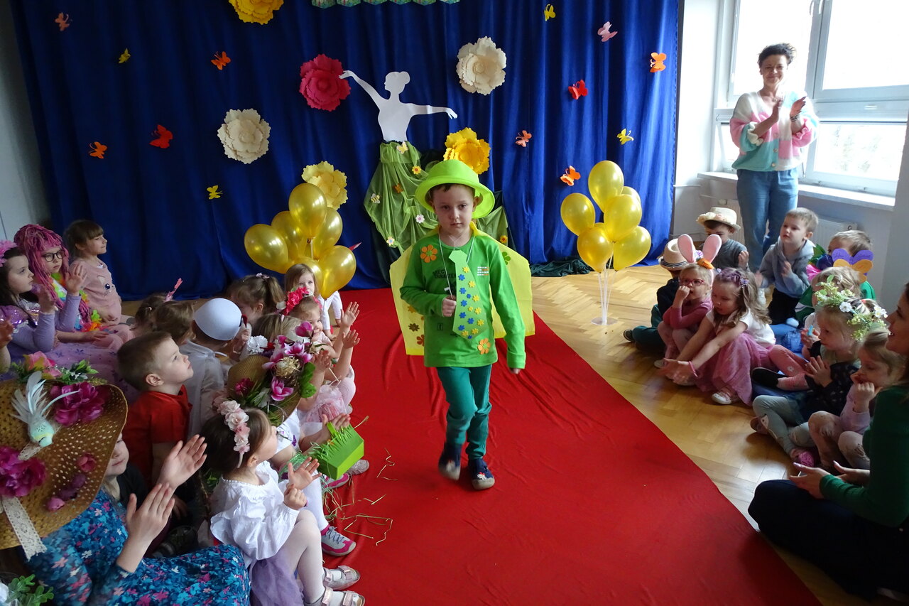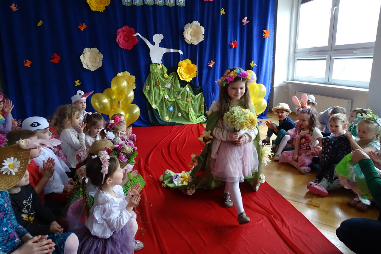 W piątek 20 marca przedszkolaki powitały nową porę roku Wiosnę. Deszczyk troszkę pokrzyżował nasze plany wyjścia w plener w celu poszukiwania Wiosny, ale to nie popsuło dobrych humorów. Bawiliśmy się podczas pokazu wiosennej mody i malowaniu pięknych kwiatów. I już mamy Wiosnę!