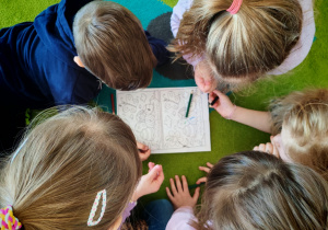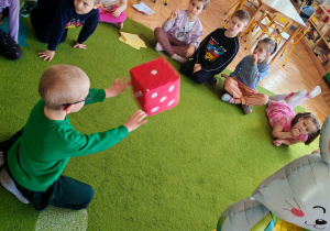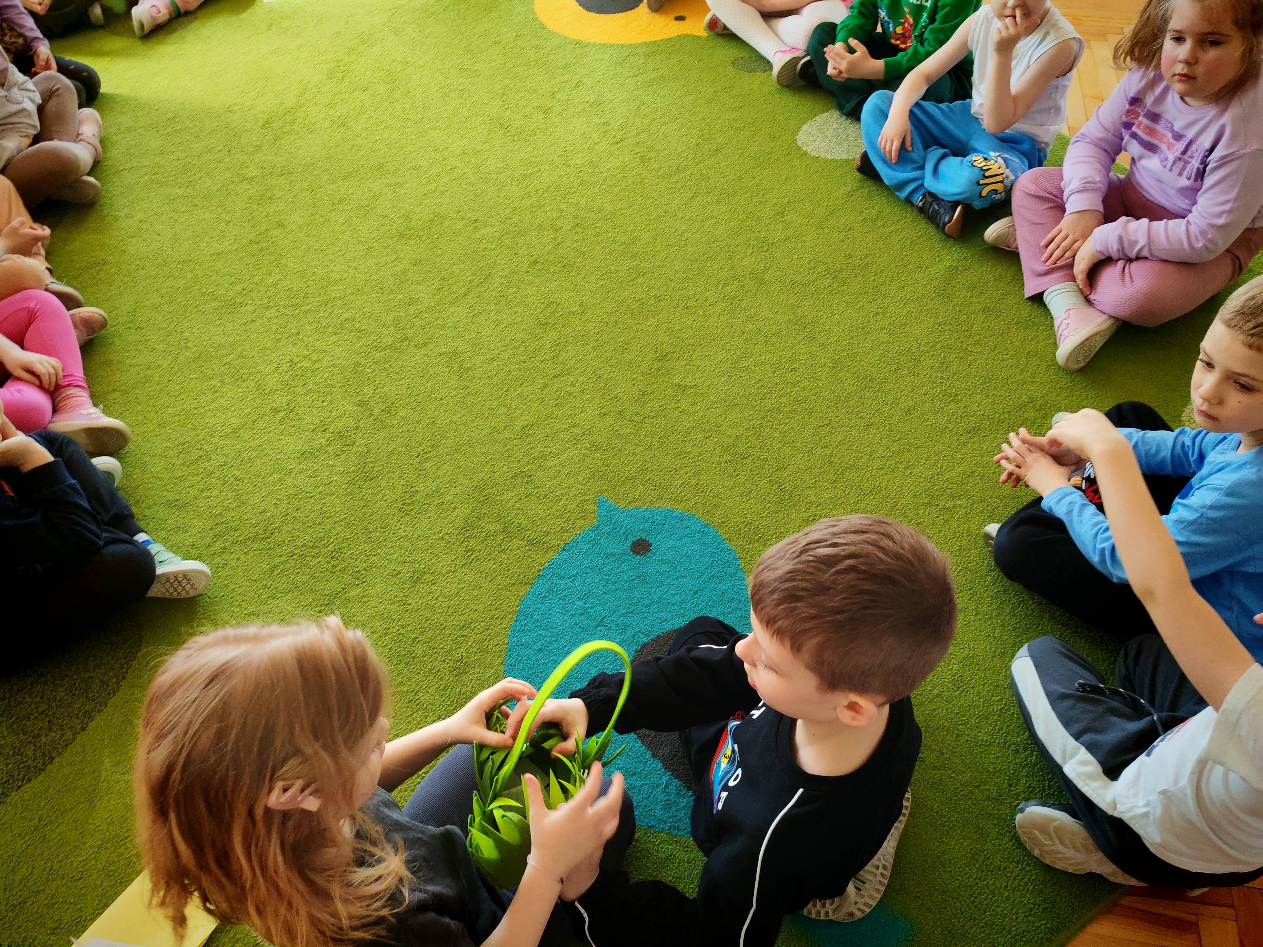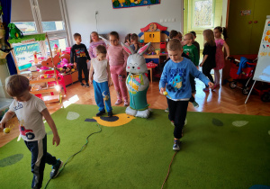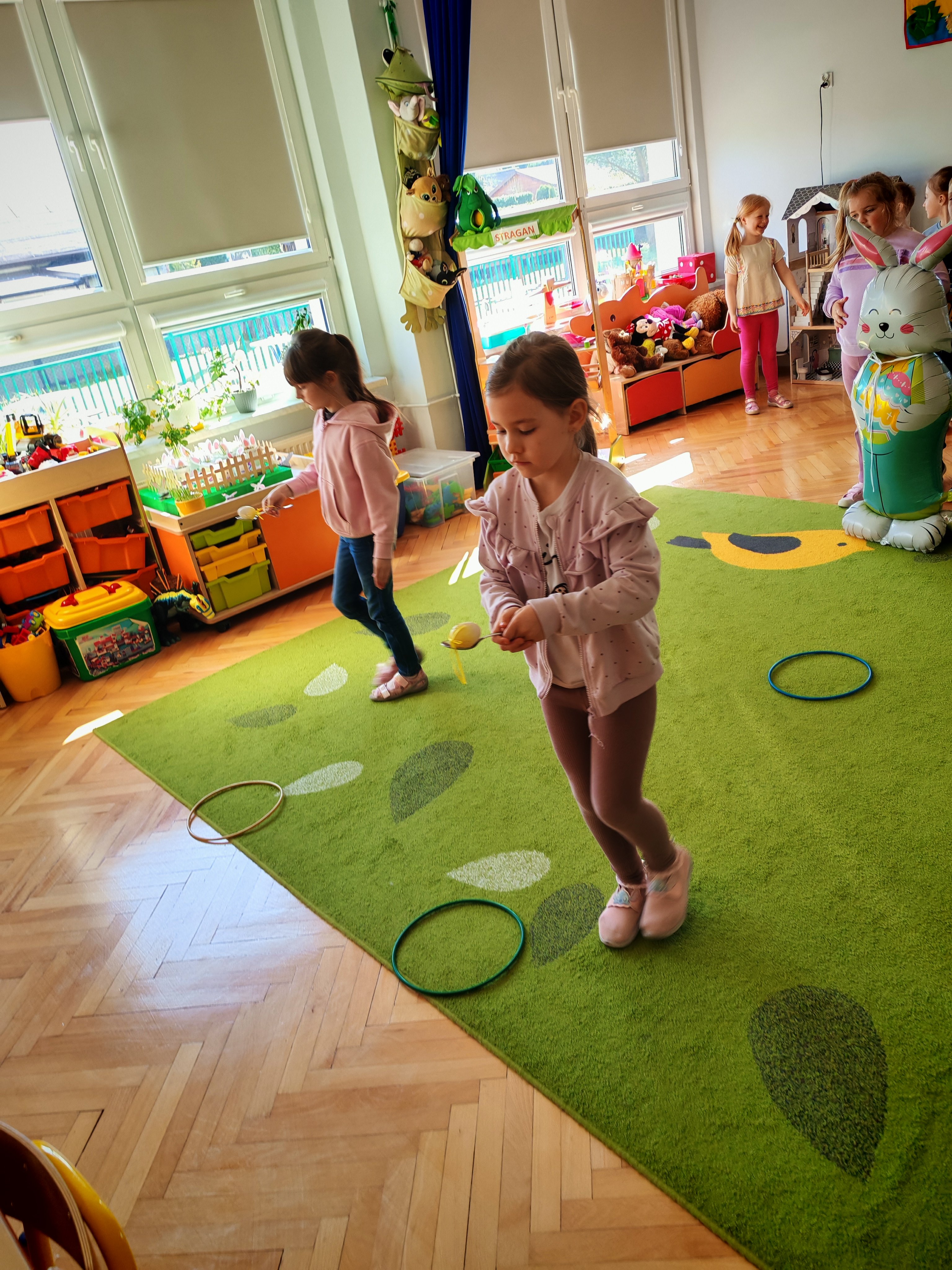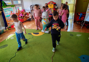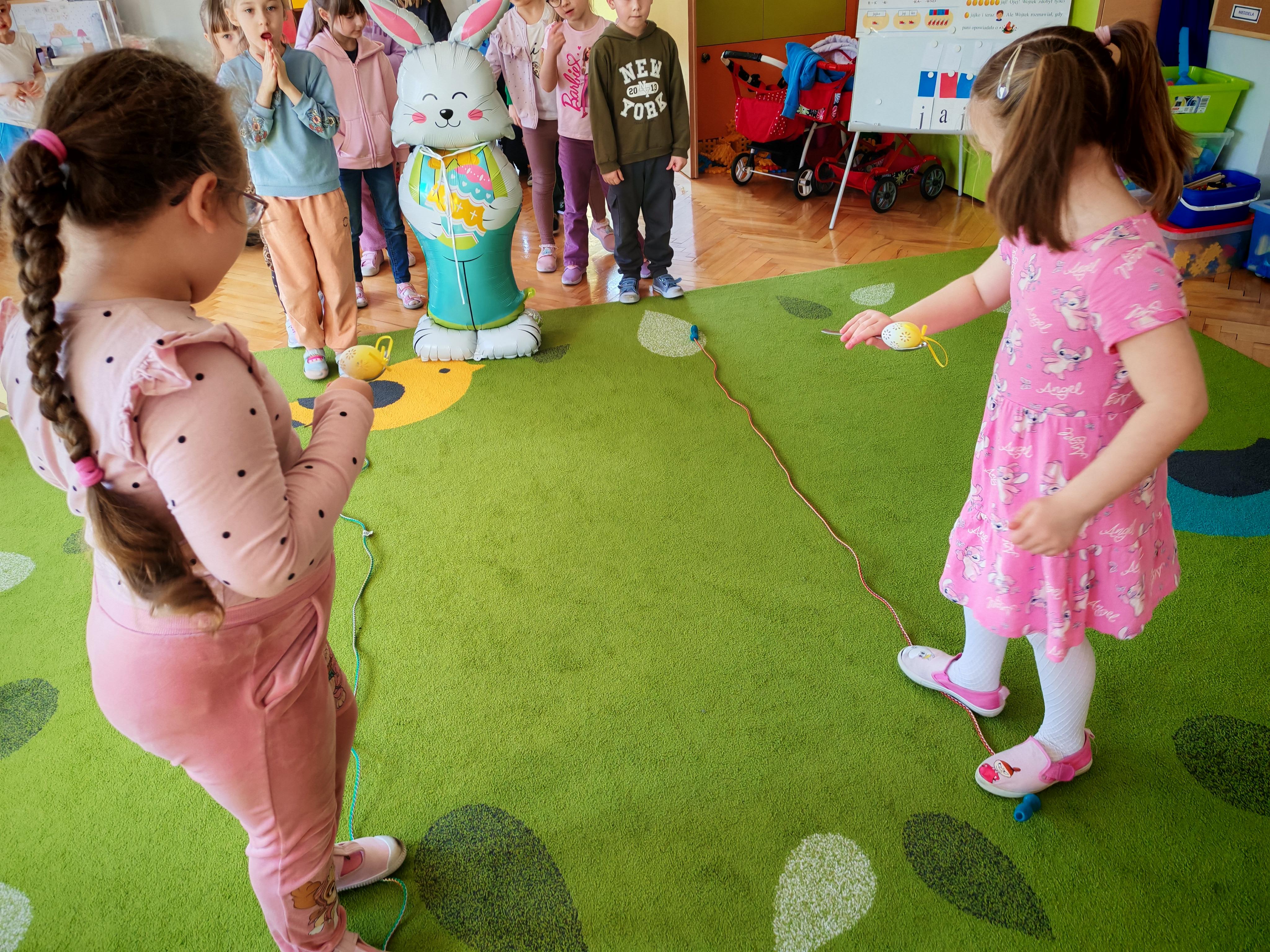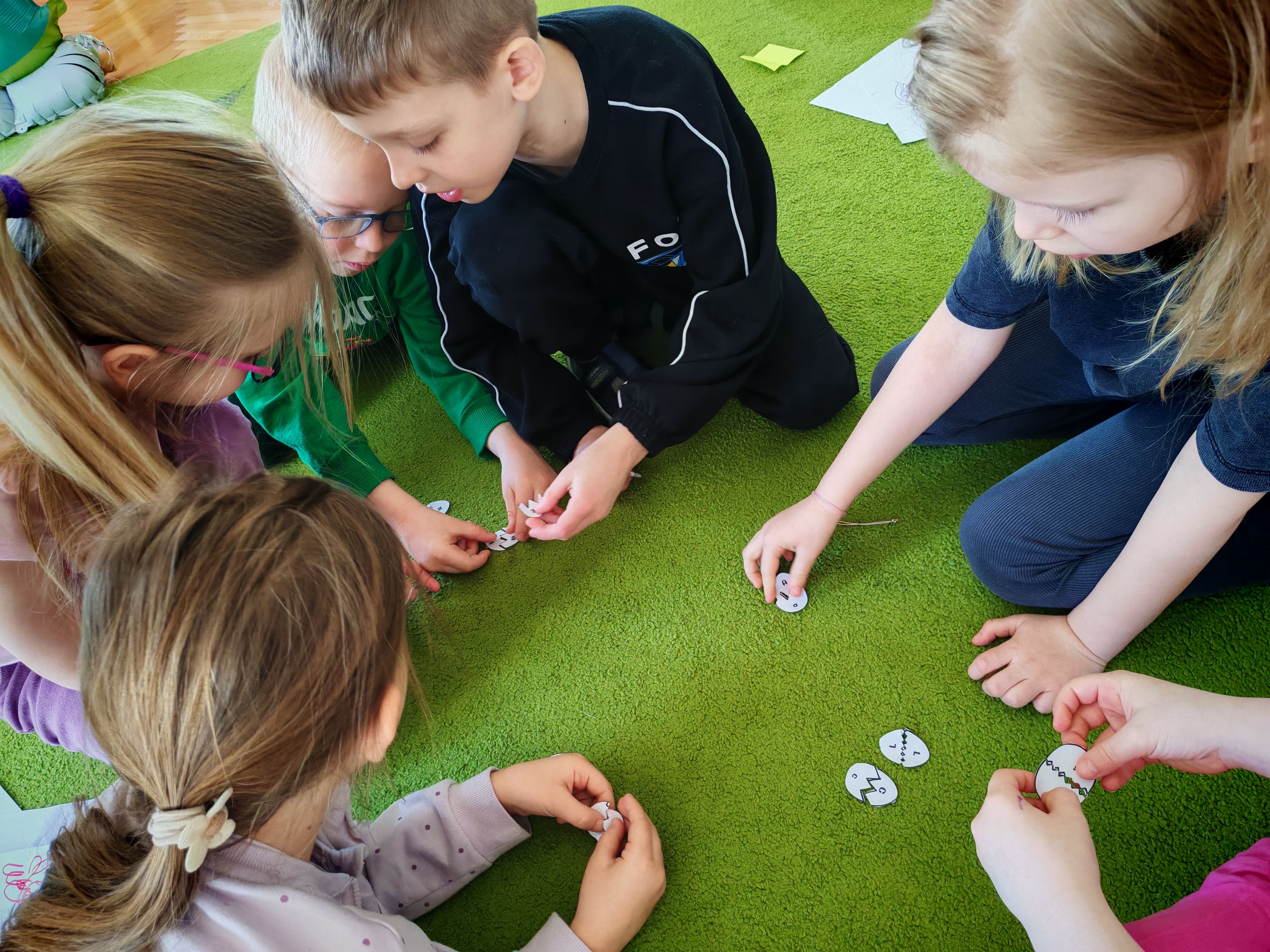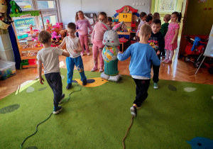 Dziś naszą grupę odwiedził wyjątkowy Gość- Zajączek. Zostawił dla dzieci niespodziankę w postaci ukrytych kopert z zadaniami. Przedszkolaki z wielkim zaangażowaniem wyruszyły na poszukiwania, a następnie wspólnie rozwiązywały przygotowane zagadki,zadania.