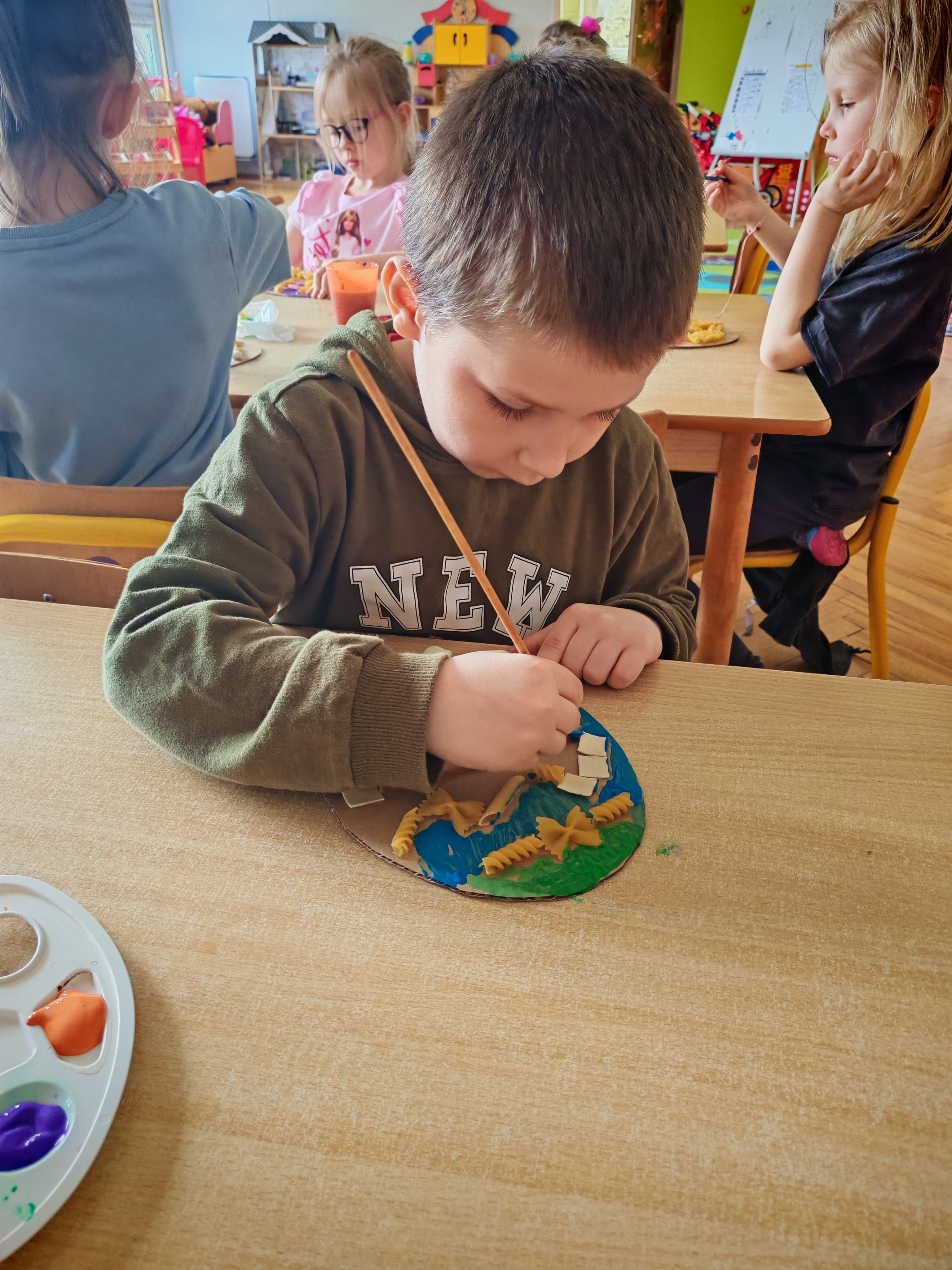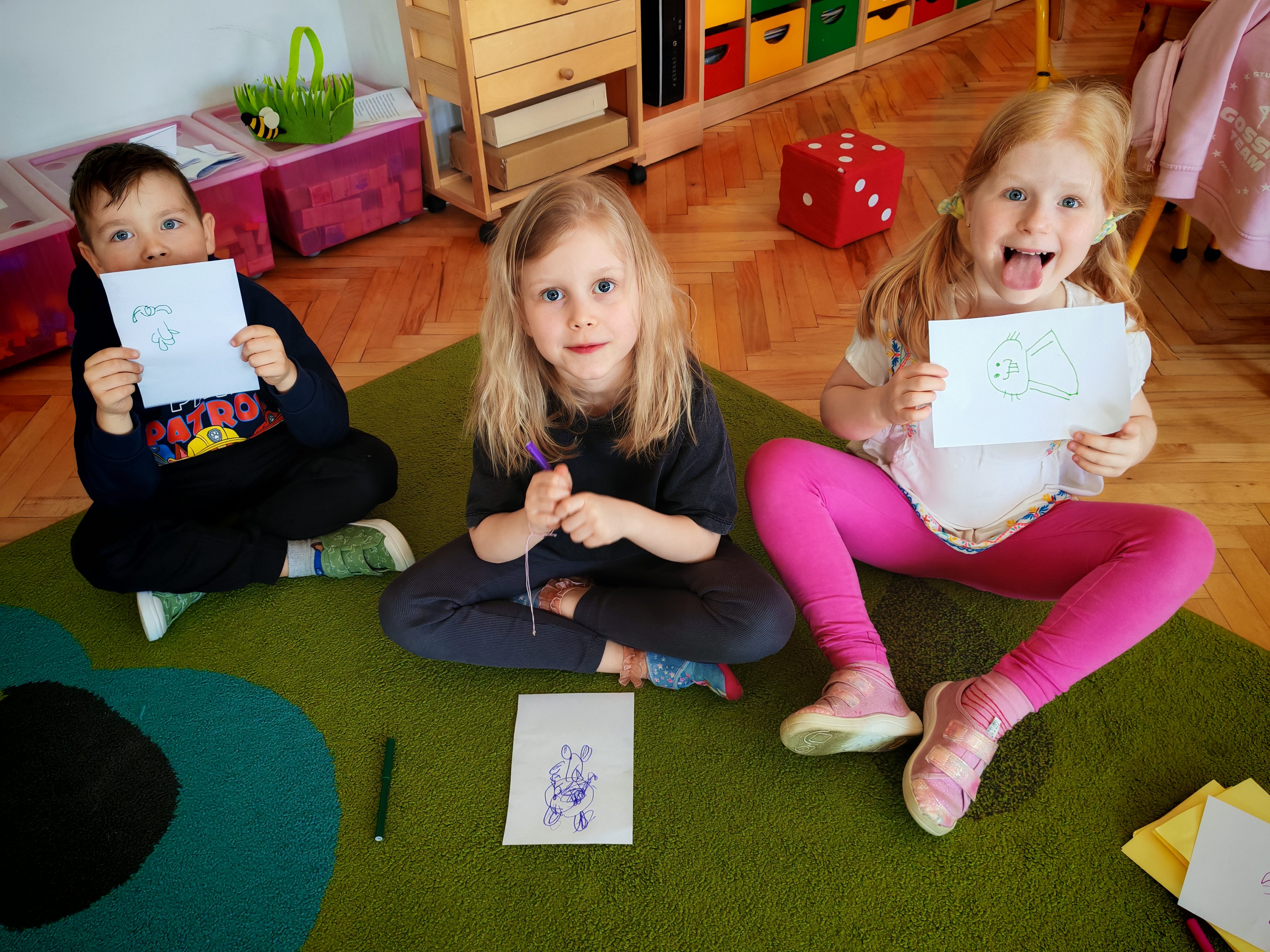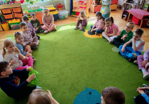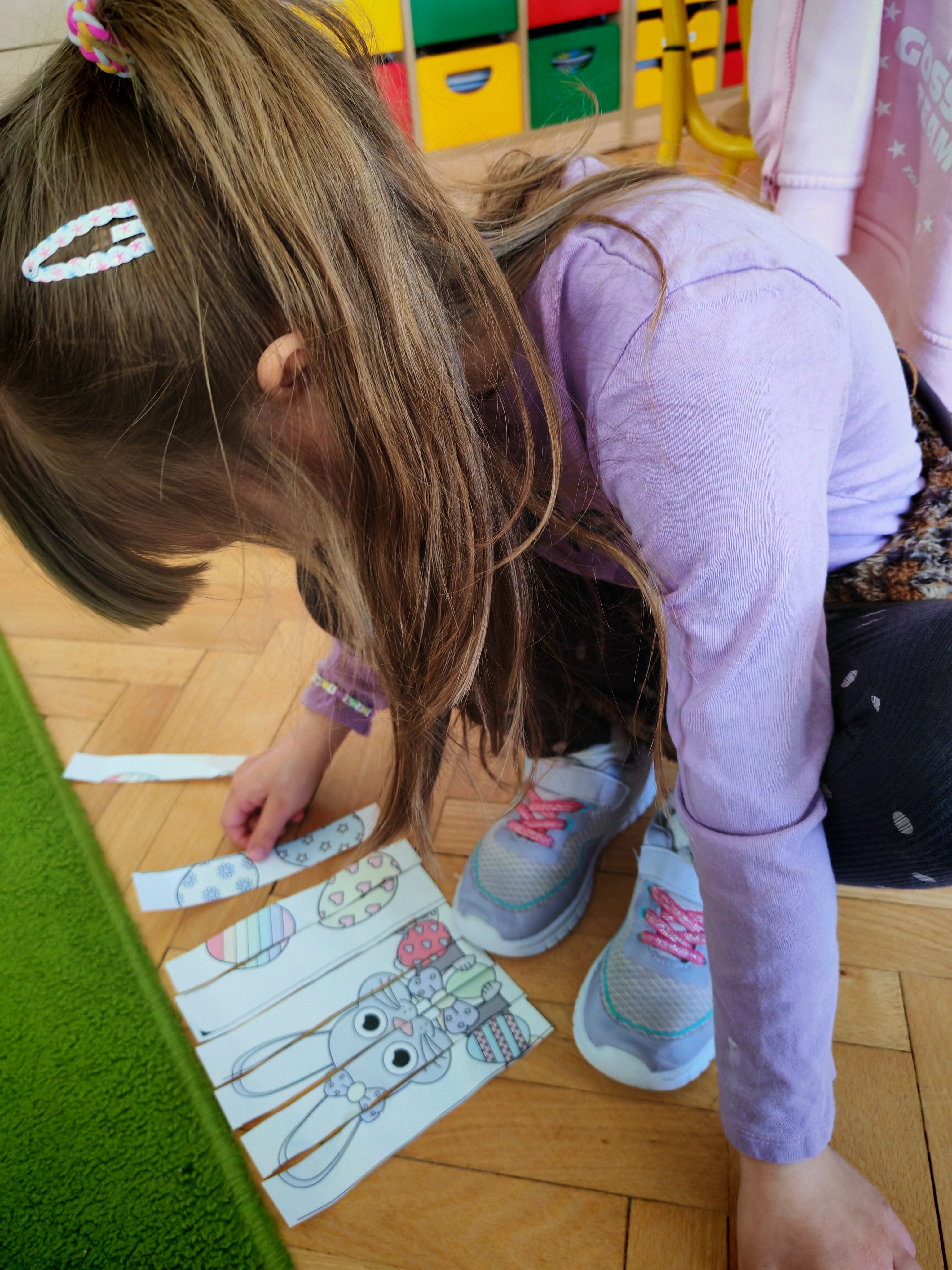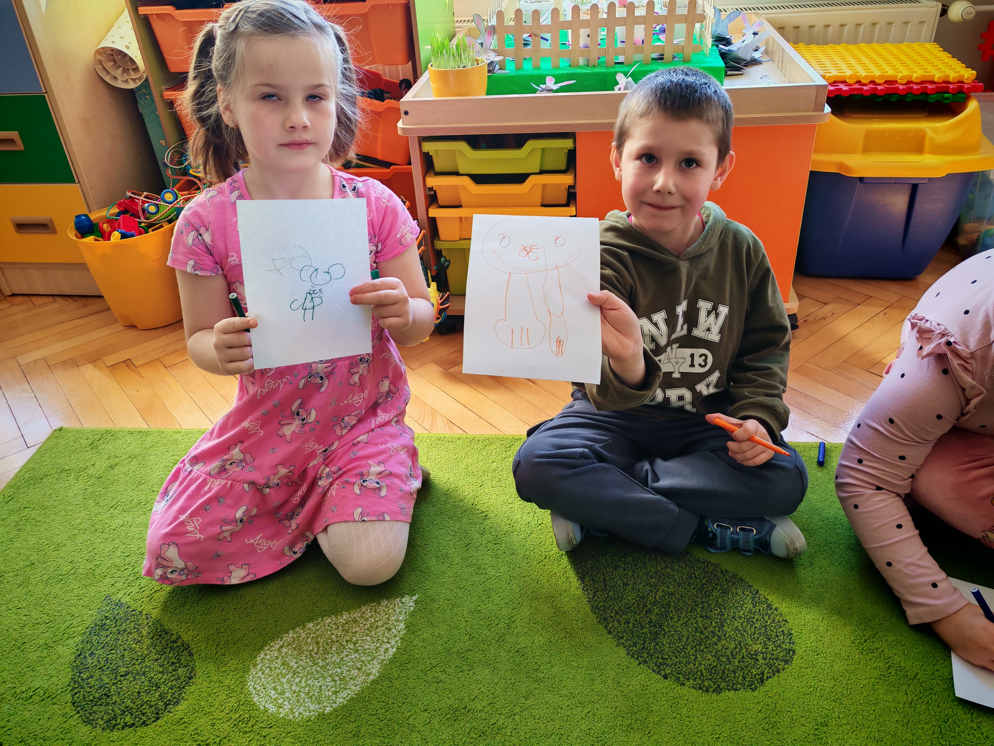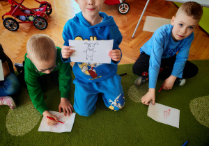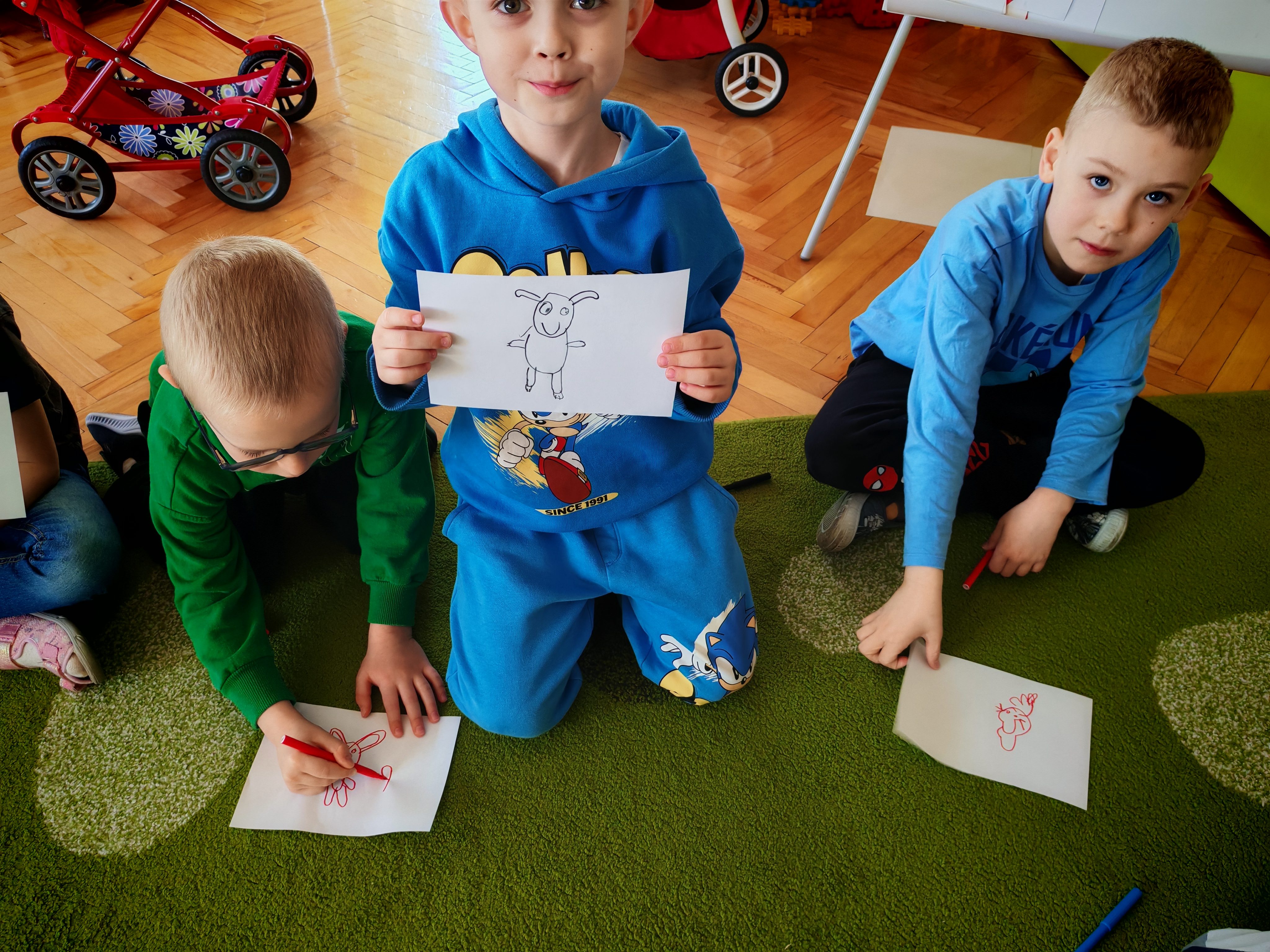 Dziś naszą grupę odwiedził wyjątkowy Gość- Zajączek. Zostawił dla dzieci niespodziankę w postaci ukrytych kopert z zadaniami. Przedszkolaki z wielkim zaangażowaniem wyruszyły na poszukiwania, a następnie wspólnie rozwiązywały przygotowane zagadki,zadania.
